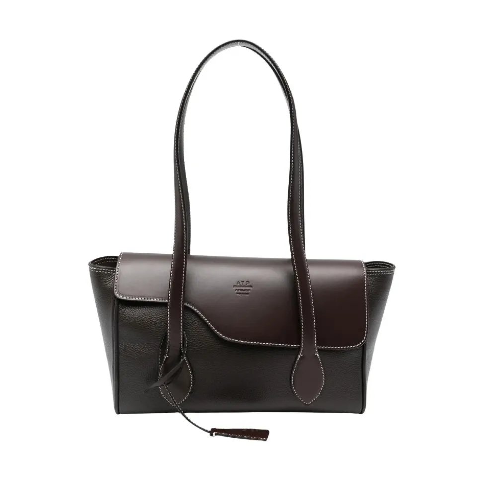 ATP Atelier Eira Shoulder Bag kombinerer en skulpturel, buet flap med en kompakt, aflang silhuet. Den er designet til hverdagsbrug og balancerer raffinerede detaljer med praktisk opbevaring. Vigtige egenskaber: Brun | Kornet kalveskind | Indvendig slip-lomme | Skulderrem (fald 26 cm) | Støvpose medfølger | Velegnet med valgfri crossbody-rem | Buet flap | Aflang silhuet | Guldfarvet hardware | Kornet lædertekstur | Mål og pasform: H 17 cm | B 27 cm | D 12 cm | Skulderremsfald 26 cm | Kompakt silhuet, der passer til daglige fornødenheder | Sammensætning og pleje: Kornet kalveskind | Vacchetta læder | Bomuldsfor | Aftørres med en blød klud. Opbevares i den medfølgende støvpose, når den ikke er i brug. Undgå langvarig udsættelse for vand og direkte varme.