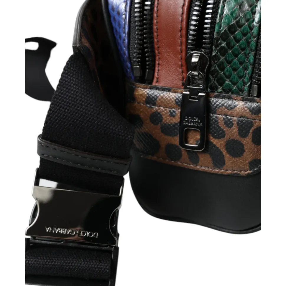Forkæl dig selv med det ultimative luksus med denne fantastiske bæltetaske fra Dolce & Gabbana. Med et iøjnefaldende leopardprint på eksklusivt eksotisk læder vil dette tilbehør helt sikkert hæve din stil. Ikke kun et statement-stykke, men også praktisk med både udvendige og indvendige lynlåslommer, fremstillet med den fineste italienske håndværk. Sølvskinnende metal detaljer og en justerbar talje rem fuldender dette eftertragtede design, der tilføjer alsidighed og elegance. Materiale: Eksotisk læder. Farve: Multifarvet. Oprindelsesland: IT. Mål: 24cm x 14cm x 8cm. Rem: 110cm x 4cm. Indvendige/udvendige lynlåslommer. Sølv metal pynt. Logo-indgraveret metal hardware.