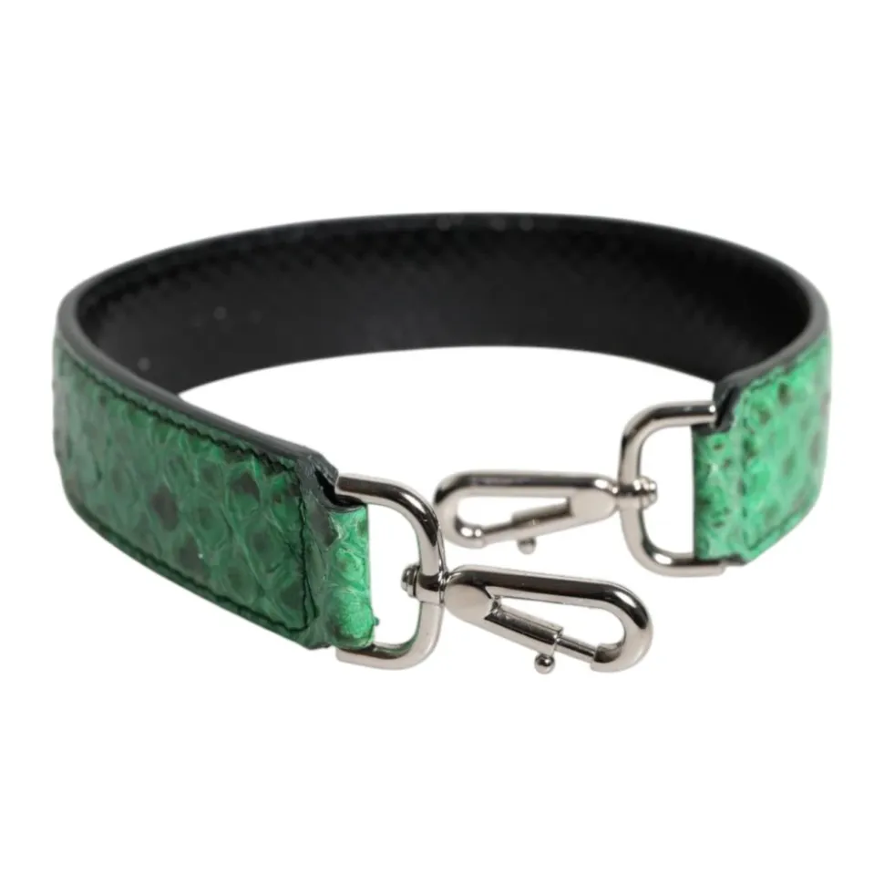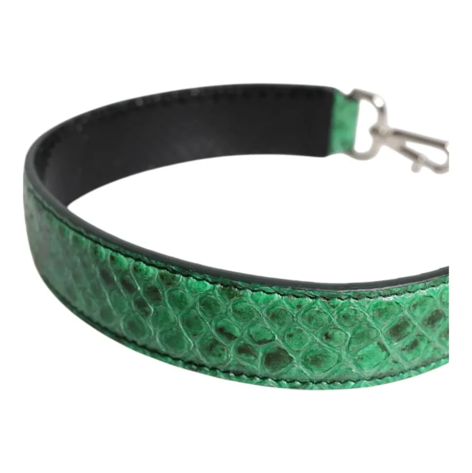 Opgrader din taskes stil med denne luksuriøse Dolce & Gabbana skulderrem, fremstillet af førsteklasses 100% pythonlæder i en markant sort og grøn farvekombination. Denne accessory er fremstillet i Italien og tilføjer et strejf af elegance til enhver taske. Produkt detaljer: Sort | Grøn | Pythonlæder | Justerbar længde | Sølvfarvede metaldetaljer | Dimensioner og pasform: 44,5 cm længde | 3 cm bredde | Sammensætning og pleje: 100% pythonlæder | Specialrensning