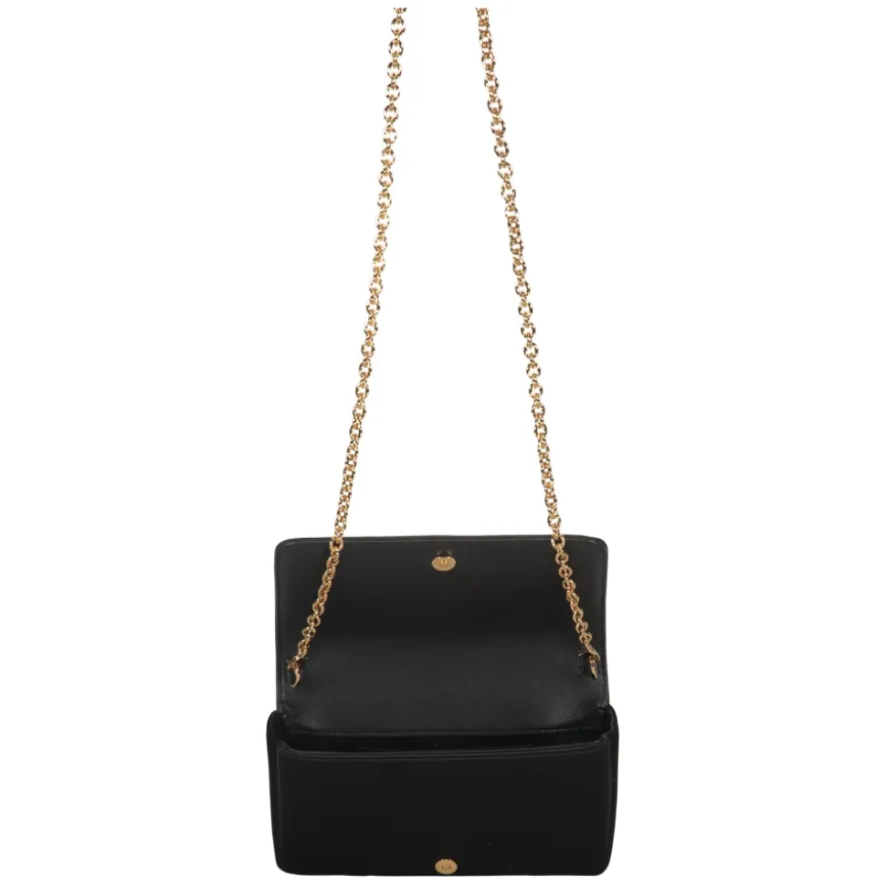 Versace Elegant Clutch er en kompakt crossbody taske, der kombinerer en sikker lukning med en gylden frontdetalje for raffineret stil og praktisk organisering. Nøgleattributter: Sort | Viskose | Sikker lukning | Tre kortlommer | Indvendigt rum | Lang skulderrem | Gylden frontdekoration | Kompakt rektangulær form | Strømlinet silhuet | Mål & pasform: Bredde: 18 cm | Højde: 10,5 cm | Dybde: 4 cm | Rem: 120 cm | Sammensætning & pleje: 72% Viskose | 28% Silke
