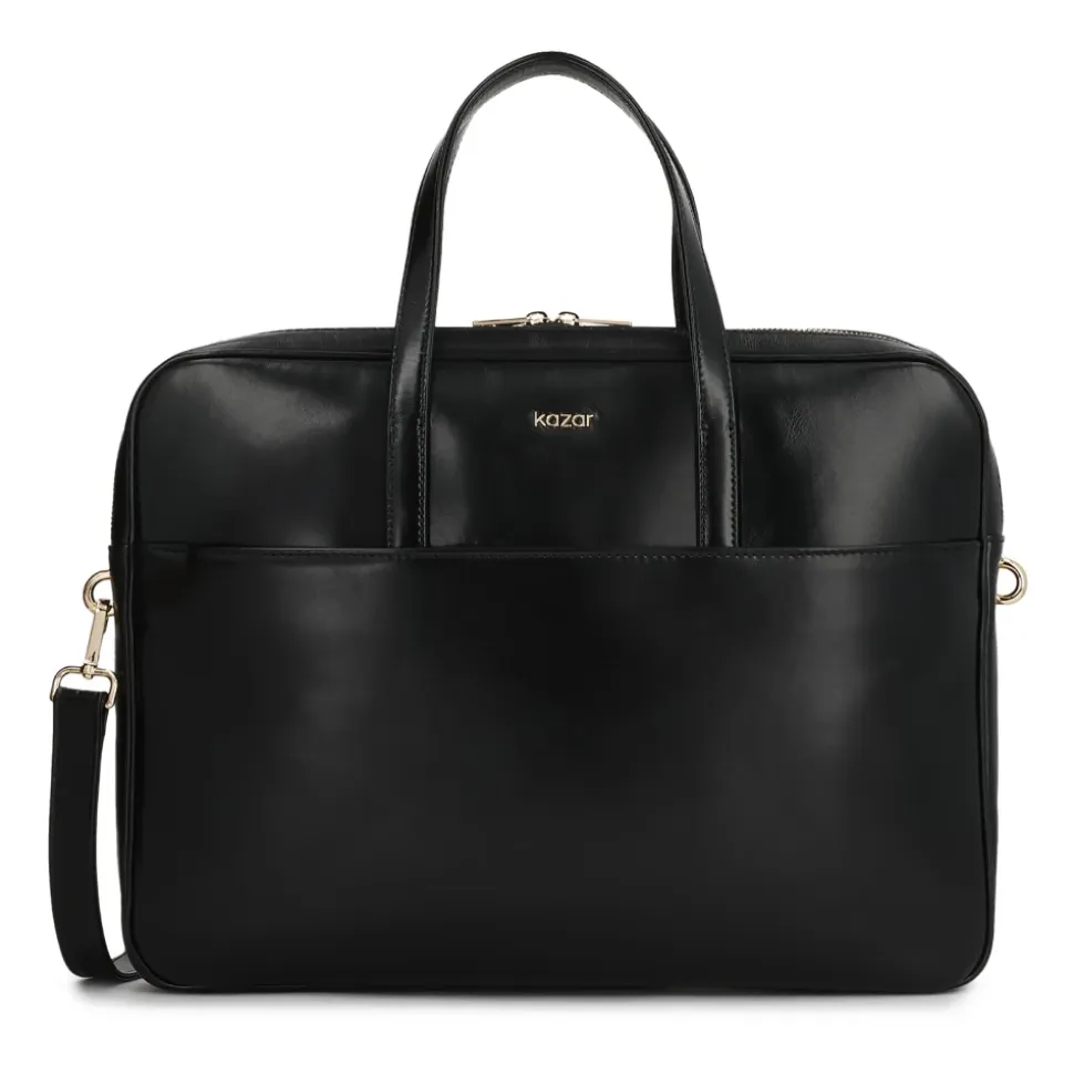 Denne elegante sorte laptop-taske lavet af høj kvalitet naturlæder er perfekt til dem, der værdsætter klassisk og professionel stil. Den glatte, let skinnende overflade giver den et luksuriøst præg, og den omhyggeligt færdige form understreger dens tidløse design. Modellen er udstyret med to robuste håndtag til bæring i hånden og et funktionelt, rummeligt interiør, der sikkert holder en bærbar computer og essentielt tilbehør. Det hele suppleres med subtile guldfarvede detaljer – lynlåse, spænder og logo – som tilføjer sofistikering og elegance til tasken. Den klassiske sorte taske er det perfekte valg til arbejde, forretningsmøder eller forretningsrejser – et praktisk og stilfuldt garderobeemne for den moderne professionelle. Produkt detaljer: Hovedrummet lukkes med lynlås. Indvendigt er der en lynlåslomme og en tryklåslomme. Der er en lomme på forsiden af tasken. Remmen er aftagelig og justerbar.