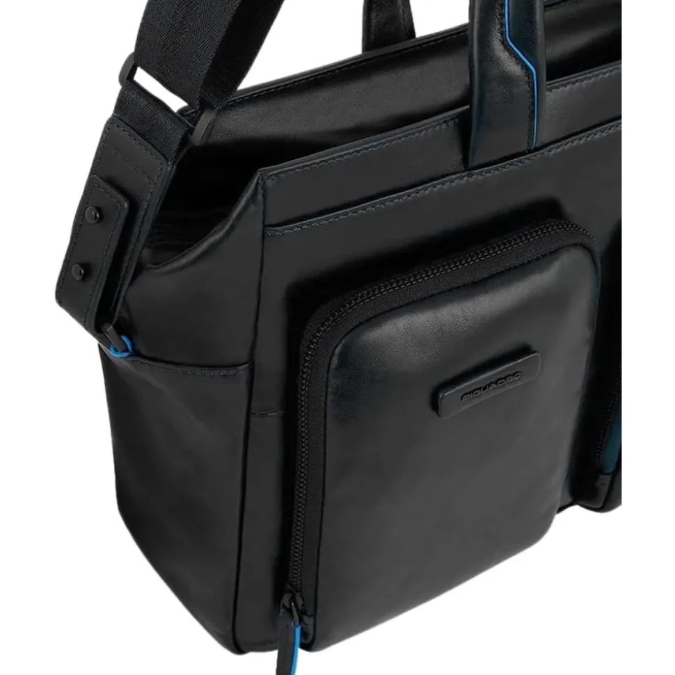 Elegant og rummelig Piquadro mappe i høj kvalitet læder. Hovedrummet tilbyder masser af plads til kontordokumenter og har en polstret lomme til bærbar computer og tablet, samt forskellige indvendige lommer til mobiltelefoner. Rum på forsiden tilbyder ekstra opbevaringsplads. Muligheden for at fastgøre til en trolley gør tasken til en fremragende rejsepartner. Antal hovedrum: 1 Ydre mål (L x B x H): 37cm x 10cm x 30cm Laptop rumstørrelse (L x B x H): 31cm x 2cm x 22.5cm Serie: B2 Revamp Materiale: Læder Bagagetype: Blød bagage Laptoptype: Tasker og messenger Laptop rum: Ja Vægt i kg: 1.02kg Ekstra: Penholder Udstyr: Lynlåsrum, Udvendig lomme, Indvendig lomme Lukketype: Lynlås Tablet-laptop rum: Ja Indvendigt materiale: Tekstil Kapacitet i liter ca.: 10-20″