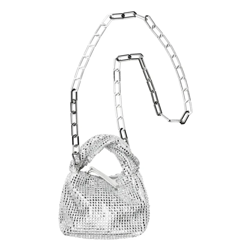 Forkæl dig selv med Ziggy Micro Hobo-tasken fra Stine Goya. Denne elegante accessory kombinerer stil og funktionalitet med en snoet top-hank, sølv skulderkæde og en rummelig hovedlomme med lynlås. Lavet af skinnende satinstof udstråler denne taske sofistikation og elegance. Bær den som en top-hank clutch eller crossbody-taske for et moderne touch.