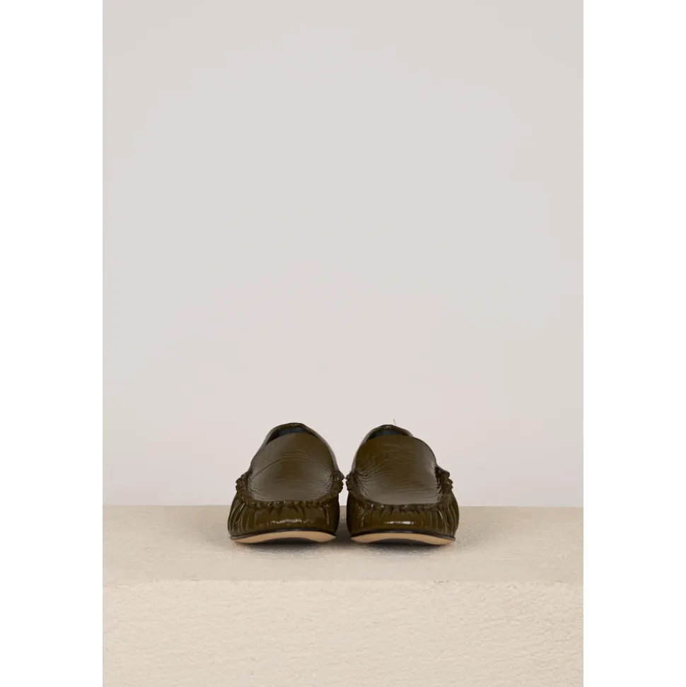 ODARE Elena Loafers er slip-on sko i laklæder med en blød, mandelformet tå, designet til et elegant hverdagslook. De kombinerer en blank finish med en strømlinet silhuet for alsidig styling. Nøgleattributter: Grøn | Groen | Laklæder | Mandelformet tå | Lakfinish | Slip-on loafer silhuet | Sammensætning & pleje: Læder