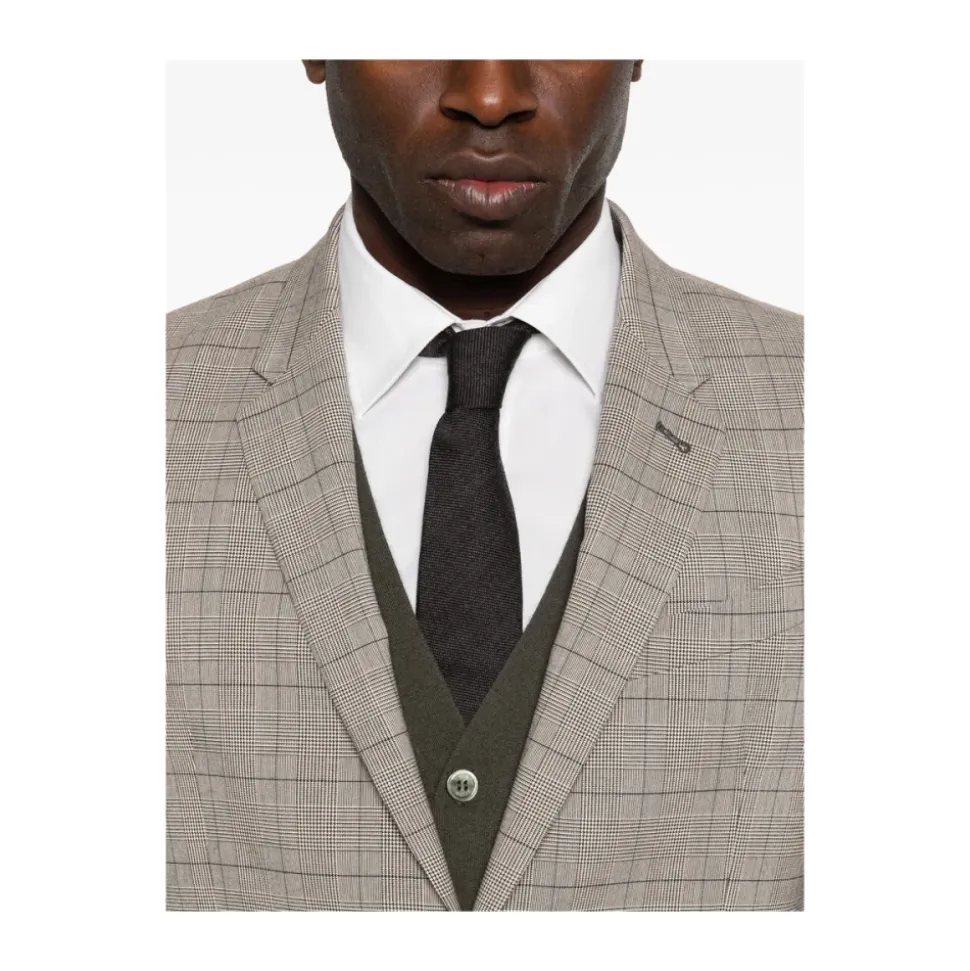 REVERES 1949 Enkeltradet habit med ternet mønster, to forlommer og knaplukning. Designet til skræddersyet arbejdstøj og formelle lejligheder, og kombinerer klassiske detaljer med praktisk hverdagsbrug. Vigtige egenskaber: Grå | Neutrale | To forlommer | Knaplukning | Ternet mønster | Lange ærmer | Knapmanchetter