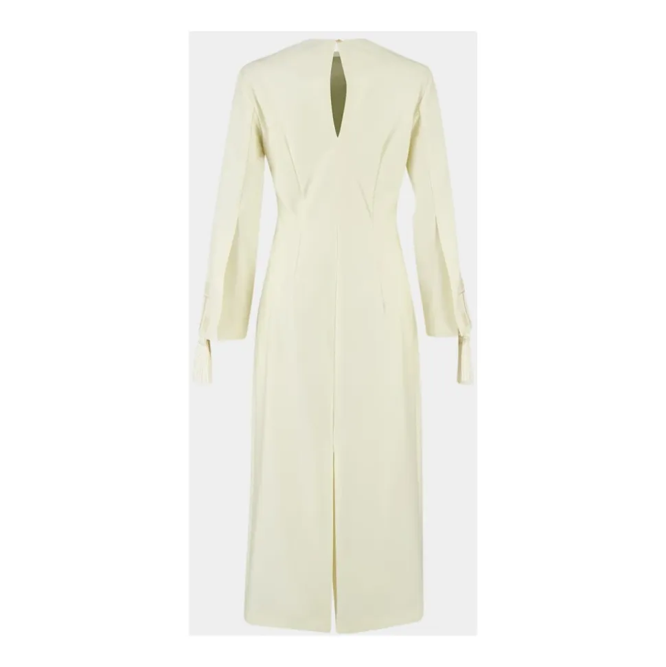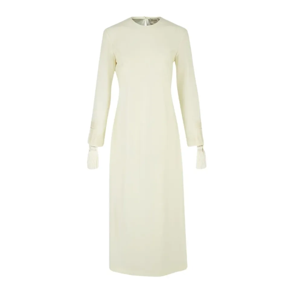 Zeus+Dione’s Equilibrium Maxi Kjole kombinerer minimalistisk skrædderi med kunstfærdige kvastdetaljer for et elegant hverdagslook eller raffinerede aftenlooks. Nøgleattributter: Hvid | Elfenben | Uld | Slids bagpå for bevægelsesfrihed | Hulnøglelukning bagpå | Lange ærmer | Rent frontparti | Diskret broderi | Kvastmanchetter | Subtil slids bagpå | Hulnøglelukning | Sammensætning og pleje: 100% Uld | Kun kemisk rensning