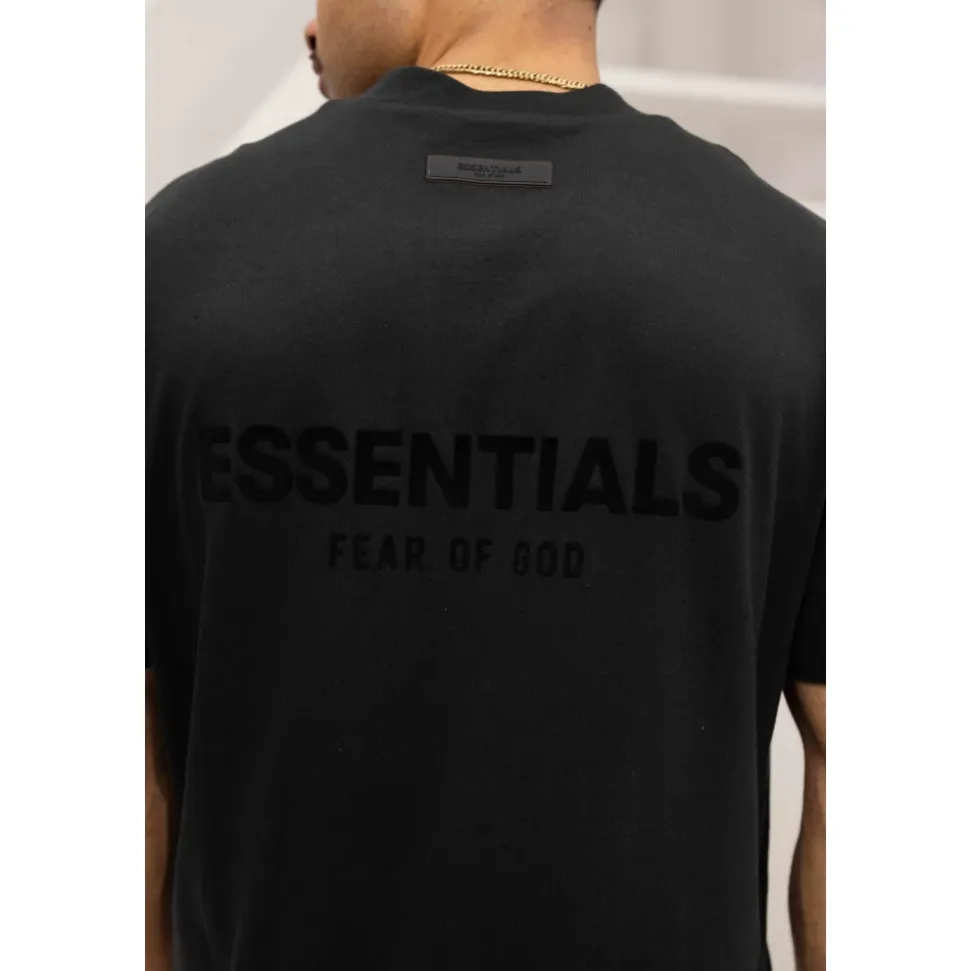 Fear Of God Essentials T-shirten kombinerer et rent, underspillet design med blød bomuldskonstruktion og et diskret rygprint – en alsidig t-shirt til afslappet lag-på-lag-påklædning i køligere årstider. Vigtigste egenskaber: Sort | Mørkegrøn | Bomuld | Rund halsudskæring | Korte ærmer | Ensfarvet mønster | Diskret rygprint | Brystlogo | Ingen lukning | Dimensioner og pasform: Almindelig pasform | Sammensætning og pleje: 100% bomuld