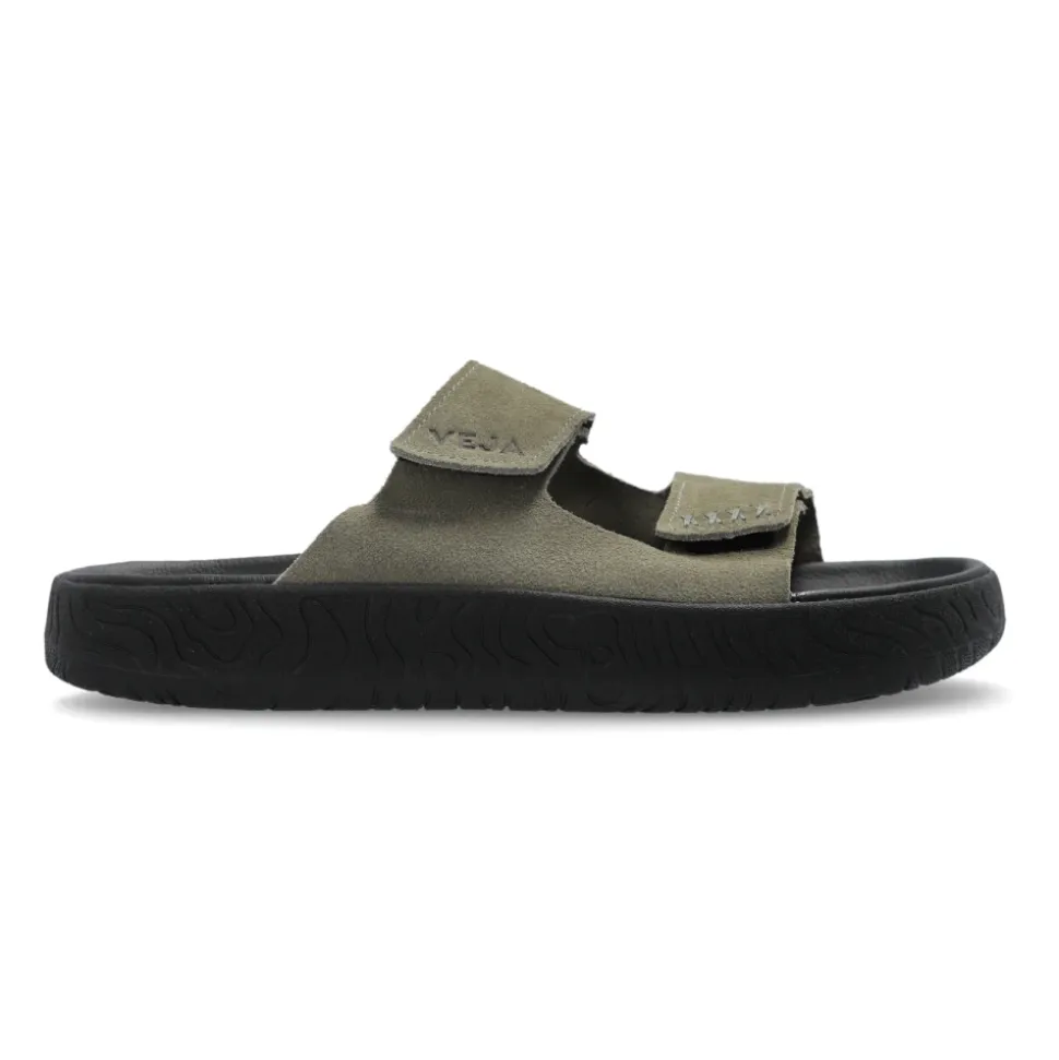 Etna slides fra Veja tilbyder en sofistikeret æstetik med deres grønne ruskindsoverflade og premium nubuck læderstropper, perfekt til hverdagens elegance. Produkt detaljer: Grøn | Ruskind | Justerbare stropper | Præget logo | Dimensioner og pasform: Ergonomisk slip-on design |