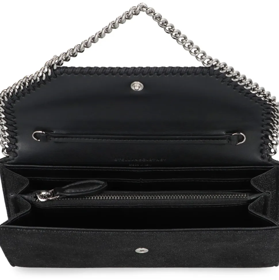 Stella McCartneys Falabella Wallet-On-Chain er en kompakt crossbody-pung, der er defineret af sin signaturkædedetalje og kuvertform. Den er fremstillet i mat Shaggy Deer-stof og designet til at organisere en telefon og små daglige fornødenheder med sikker magnetlukning. Vigtige egenskaber: Sort | Shaggy Deer-stof | Belagt stof | Slidstærk, halvblank kornet overflade | Crossbody-rem med kæde | Indvendig stiklomme | Et hovedrum | Magnetisk tryklukning | Fuldt foret interiør | Diamantskåret kædedetalje | Piskesyning langs kanten | Graveret logo-medaljoncharm | Kuvertformet silhuet | Mat, halvblank kornet finish | Dimensioner og pasform: Bredde: 19,5 cm | Højde: 10 cm | Dybde: 2 cm | Passer til alle telefoner og små daglige fornødenheder. | Sammensætning og pleje: 100 % polyester | Pletrenses kun med en blød, fugtig klud.