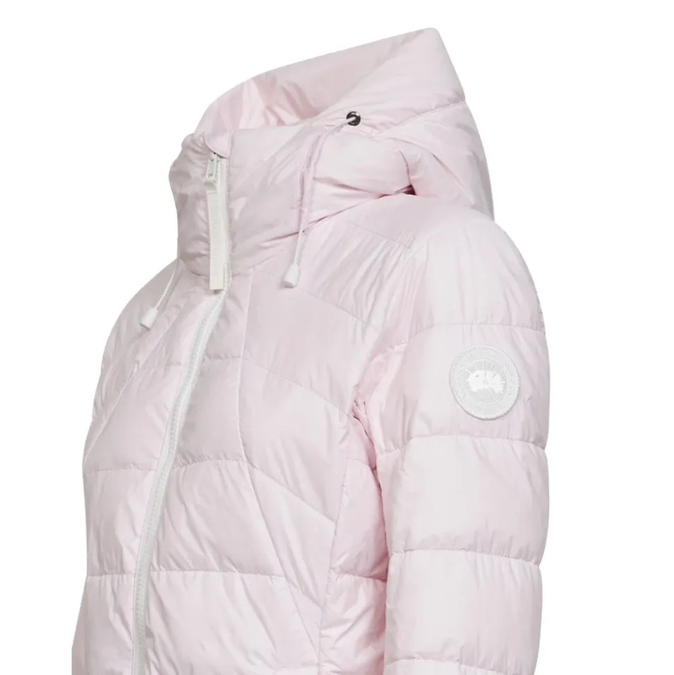 Canada Goose Feather-Light Jacket er et let, isolerende yderlag, der kan pakkes sammen, designet til rejser i koldt vejr og hverdagsbrug. Den kombinerer 750 fill power dun med en vandafvisende og vindtæt skal for letvægtsvarme. Nøgleattributter: Pink | Bloom pink | Polyamid | Vandafvisende | Vindtæt | Letvægt | Isolerende (750 Fill Power dun) | Dobbelt lynlåslukning foran | Vatteret hætte med justerbar snøre | Sidelommer med skjult trykknaplukning | Kan pakkes ned i indvendig venstre lomme; omdannes til en pose med snøre og bærestrop | Elastiske manchetter | Kiler under armene | Foret | Lange ærmer | Hvidt Disc-logo patch på venstre ærme | Skjulte trykknaplukninger på sidelommer | Fremstillet i Canada | Dimensioner og pasform: Slim fit | Sammensætning og pleje: 100% Polyamid | 750 Fill Power dun