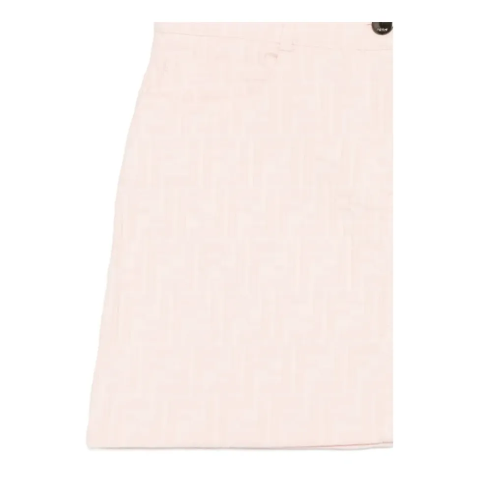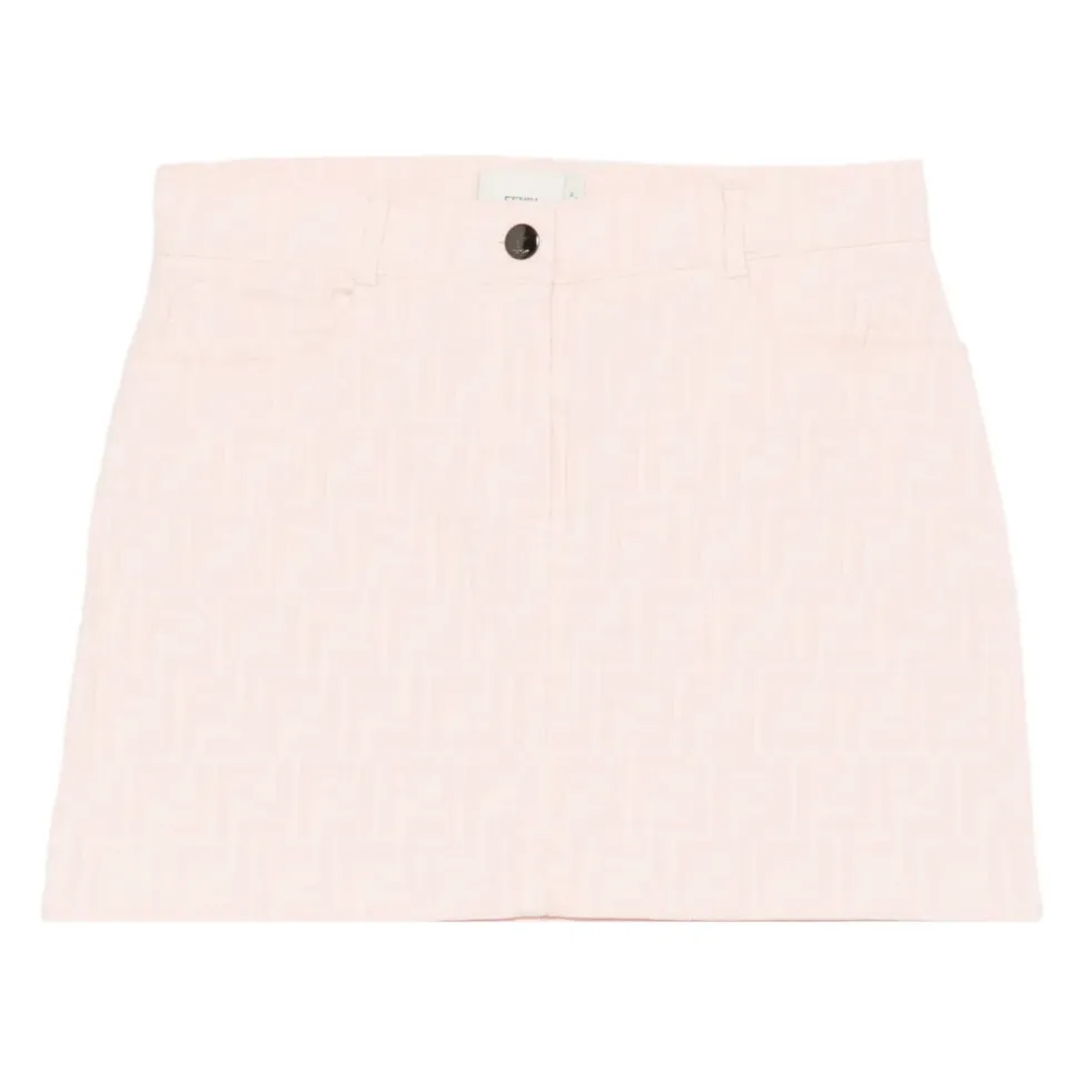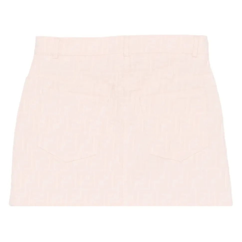 Fendi FF Skirt kombinerer husets signatur FF-motiv med styling med fem lommer og bæltestropper for et struktureret, alsidigt skørt. Designet kombinerer klassiske denim-elementer med en logo-fremadrettet finish. Nøgleattributter: Pink | Bomuld | Knap- og lynlåslukning | Bæltestropper | Fem lommer | FF-motiv