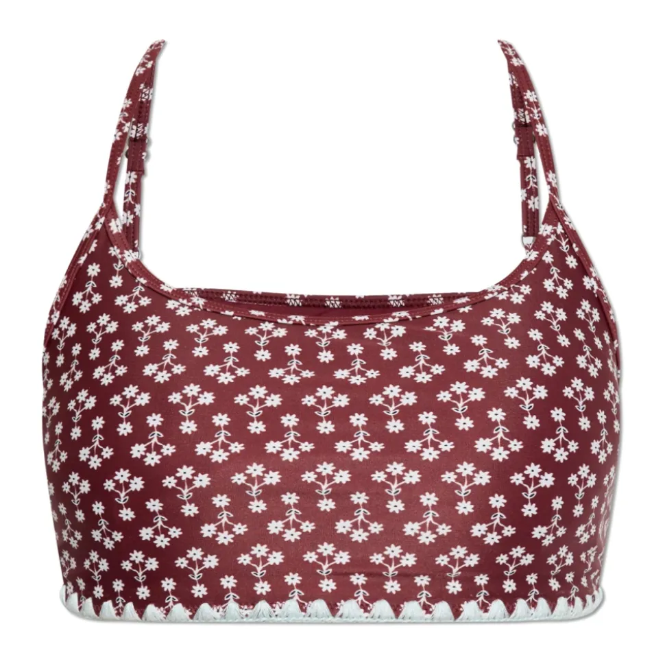 The Upside Firefly Sports BH kombinerer raffineret minimalisme med funktionelt design og tilbyder støttende dækning og en flatterende silhuet til træning og hverdagsbrug. Nøgleattributter: Rød | Bordeaux | Elastisk, glat stof | Behagelig til aktiv brug | Fuld dækning foran | Former figuren | Bevægelsesfrihed | Rektangulært snit | Delikate stropper | Almindeligt hvidt blomsterprint på bordeaux baggrund | Let broderi i blonde-stil langs nederste kant | Ingen synlige logoer eller inskriptioner | Mål og pasform: Højde: 176 cm | Bryst: 85 cm | Talje: 60 cm | Hofter: 89 cm | Modellen er iført størrelse: S | Fuld dækning foran | Afslører kunstfærdigt skulderbladene | Elastisk stof former figuren | Designet til bevægelsesfrihed