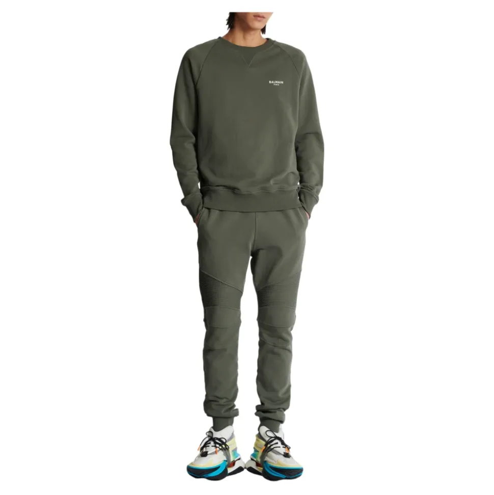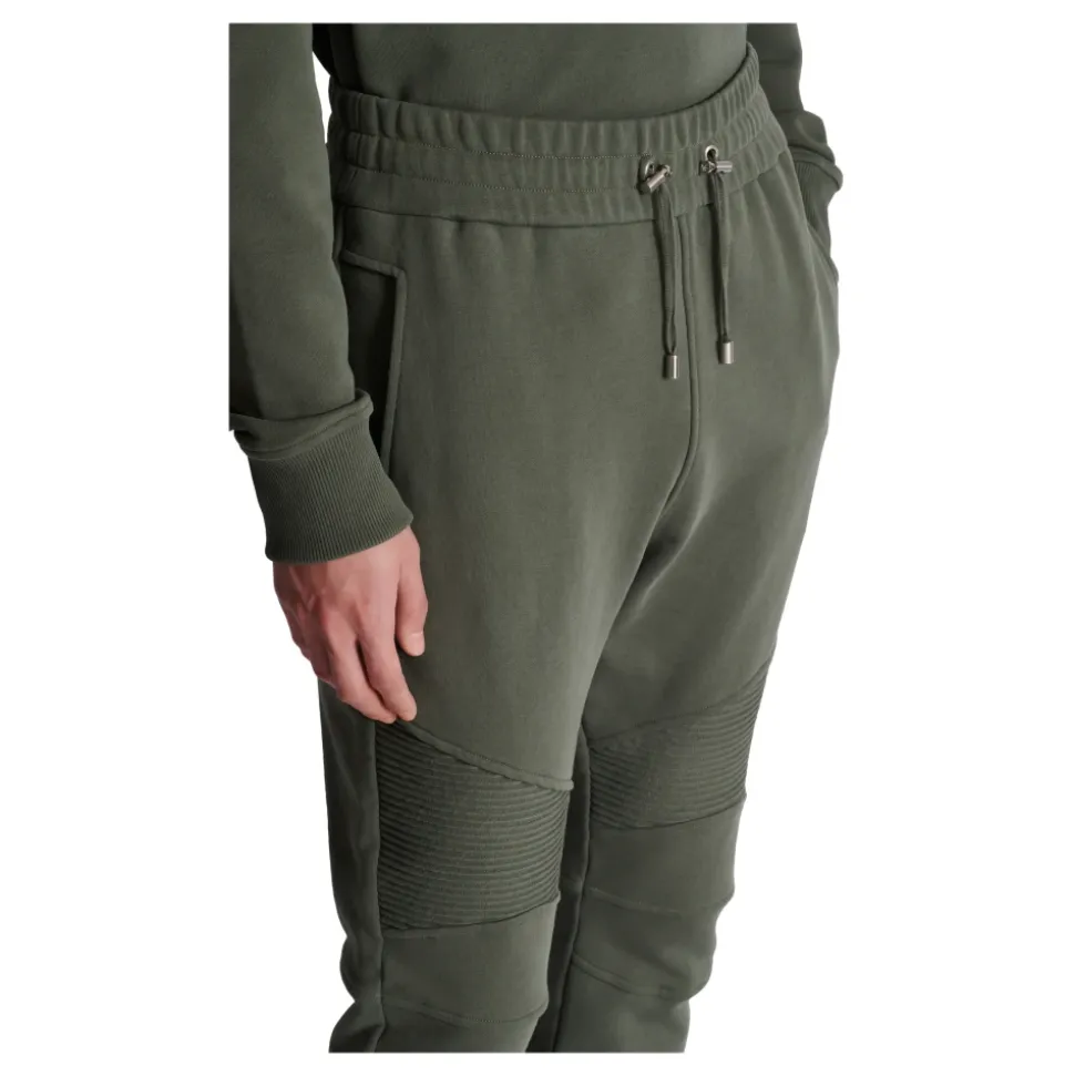 Flocked Balmain Paris joggersnLige snitnRibbede knænElastisk snøre i taljen2 italienske lommern1 lappelomme på bagsidennKontrastflocket Balmain Paris-logo på bagsidennGraverede sølvaglets, øjer og stopperenSamlede ribbede kanternModellen måler 189 cm og bruger en størrelse MnHovedmateriale: 100% bomuldnProduceret i PortugalnVare: DH1OB000BB04n100% af bomuldsfibrene, der bruges til at lave dette tøj, er certificeret og dyrket