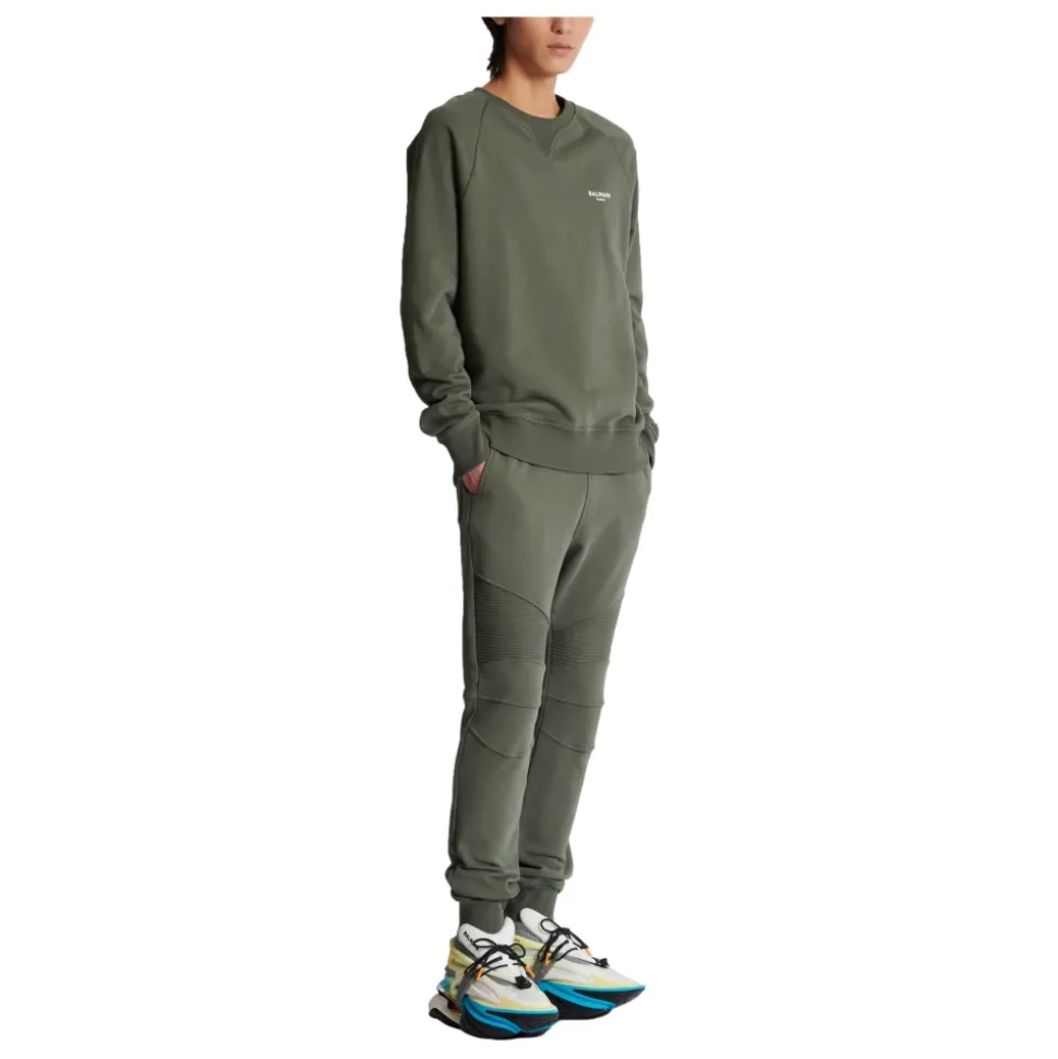 Balmain Paris flocked sweatshirtAfslappet pasformRund halsLangærmetKontrasterende flocked Balmain Paris logo på forsidenRibbet kantningModellen måler 189 cm og bruger en størrelse MHovedmateriale: 100% bomuldProduceret i PortugalVare: DH1JQ005BB04100% af bomuldsfibrene, der bruges til at lave dette tøj, er certificeret og dyrket