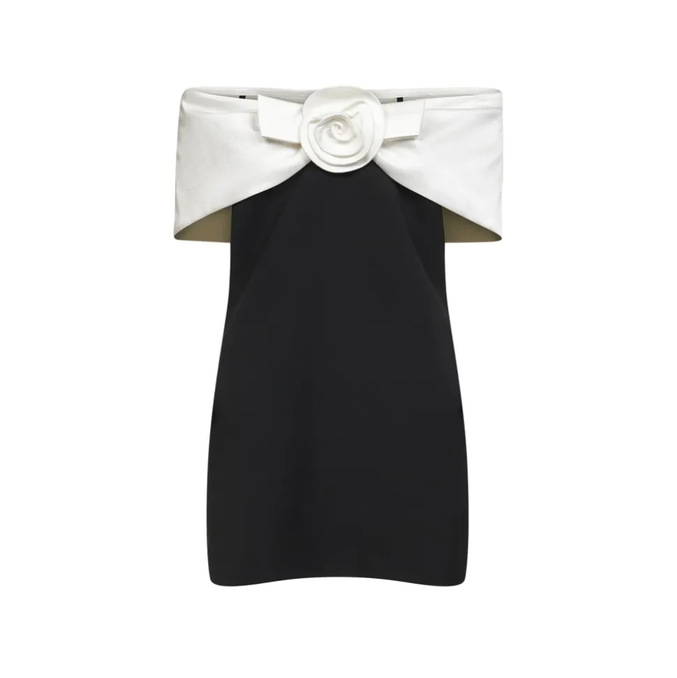 Self Portrait Floral-appliqué Mini Dress kombinerer en Bardot-udskæring med en skulpturel corsage for et iøjnefaldende partylook. Den off-the-shoulder silhuet og 3D-blomsterdetaljer skaber et elegant fokuspunkt. Vigtige egenskaber: Sort | Polyester | Usynlig lynlåslukning bagpå ved nederdelen | Bardot-udskæring | Off-the-shoulder | Skulpturel hvid corsage i silkeblanding med rynkede detaljer og 3D-blomst foran | Udskæring bagpå | Dimensioner & pasform: Figursyet pasform | Sammensætning & pleje: 100% Polyester