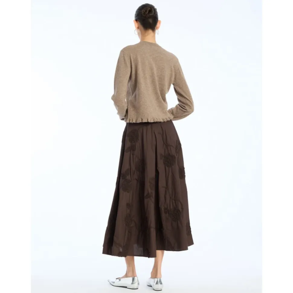 ROTATE Birger Christensen Flower Maxi Skirt har en voluminøs, udstillet silhuet med teksturerede 3D-blomsterapplikationer. Designet til et statement-look, den kan bruges som aftenbeklædning eller med afslappede toppe til et elegant hverdagslook. Nøgleattributter: Mørkebrun | Bomuld | Sidelommer | Skjult lynlåslukning | Taljeret linning | 3D-blomsterapplikation | A-formet, udstillet silhuet | Mål og pasform: Udstillet pasform | Maxi-længde | Materiale og pleje: 100% bomuld | Renseri