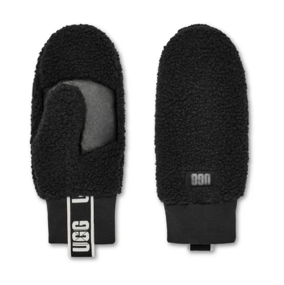 UGG Fluff Mitten With Logo Tape kombinerer blød sherpa-isolering med en forstærket læderhåndflade til hverdagsbrug i koldt vejr. Designet til nemt at tage af og på, og kombinerer fluffy varme med logo-detaljer. Vigtigste egenskaber: Sort | Sherpa | Isoleret faux-fur foring | Varm fleecekonstruktion | Strækbare stormmanchetter | Brandede trækstropper for nem af- og påtagning | Læderhåndflade for greb og forstærkning | Vante silhuet | Fluffy sherpa ydre | Læder logo patch | Logo tape detalje | Dimensioner og pasform: Fås i S/M og L/XL | Sammensætning og pleje: Akryl | Modakryl | Polyester sherpa | Faux fur foring (polyester) | Læder (logo og håndflade) | Pletrens stoffet; professionel læderrens til læderdele.