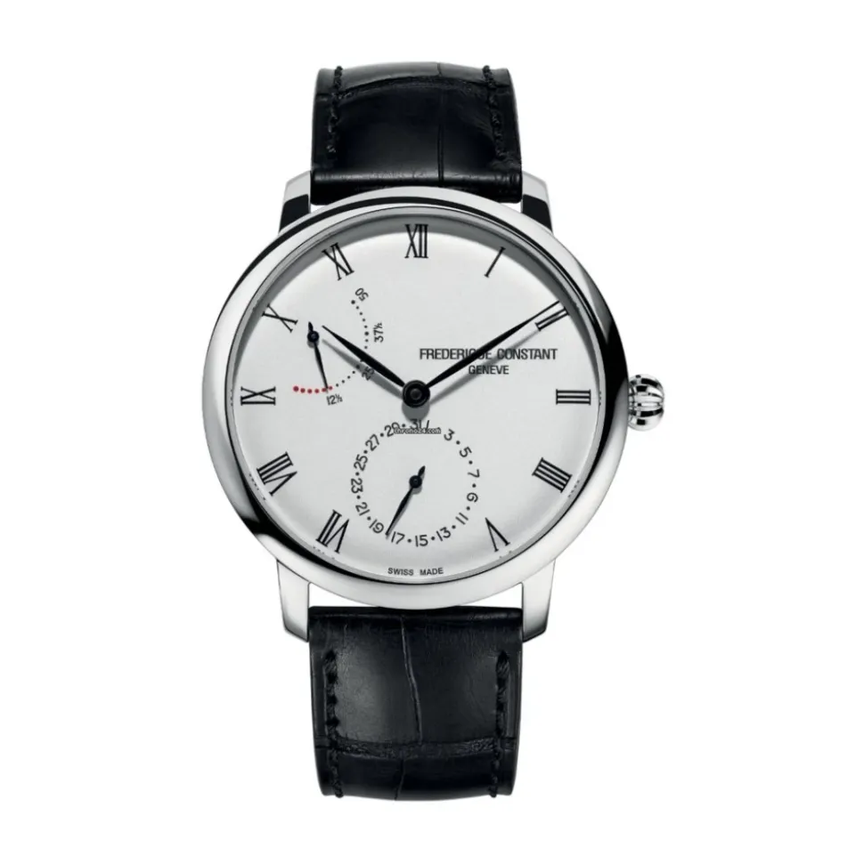 Præsenterer Frederique Constant Uomo FC-723WR3S6 Slimline Power Reserve Manufacture ur til mænd. Dette automatiske ur har en sølvskive og et rustfrit stålkasse med en diameter på 40 mm. Med en vandtæthed på 3 ATM og safirglas er dette ur både stilfuldt og holdbart. Læderremmen og deployant-spændet tilføjer et strejf af sofistikering. Hæv din stil med dette eksklusive Frederique Constant ur.