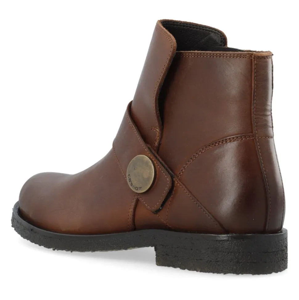 Cashott Copenhagen præsenterer FREJA Low Biker Boot i Cognac, et stilfuldt par ankelstøvler til kvinder. Fremstillet af blødt pull-up læder i en smuk brun farve, har disse støvler en praktisk lynlås i indvendig side for nem på- og afklædning. Freja-støvlen kombinerer ubesværet bikerstil med femininitet, hvilket gør den til et must-have for den moderne kvinde, der værdsætter både komfort og mode. Håndlavet i Portugal, er disse støvler designet med åndbar mikrofiberforing, blød tekstilforing, ægte crepesål og hukommelsesskumindlægssåler for en behagelig pasform. Hælhøjde: 3 cm. Materiale: 100% læder. Stil nr.: 61301375.