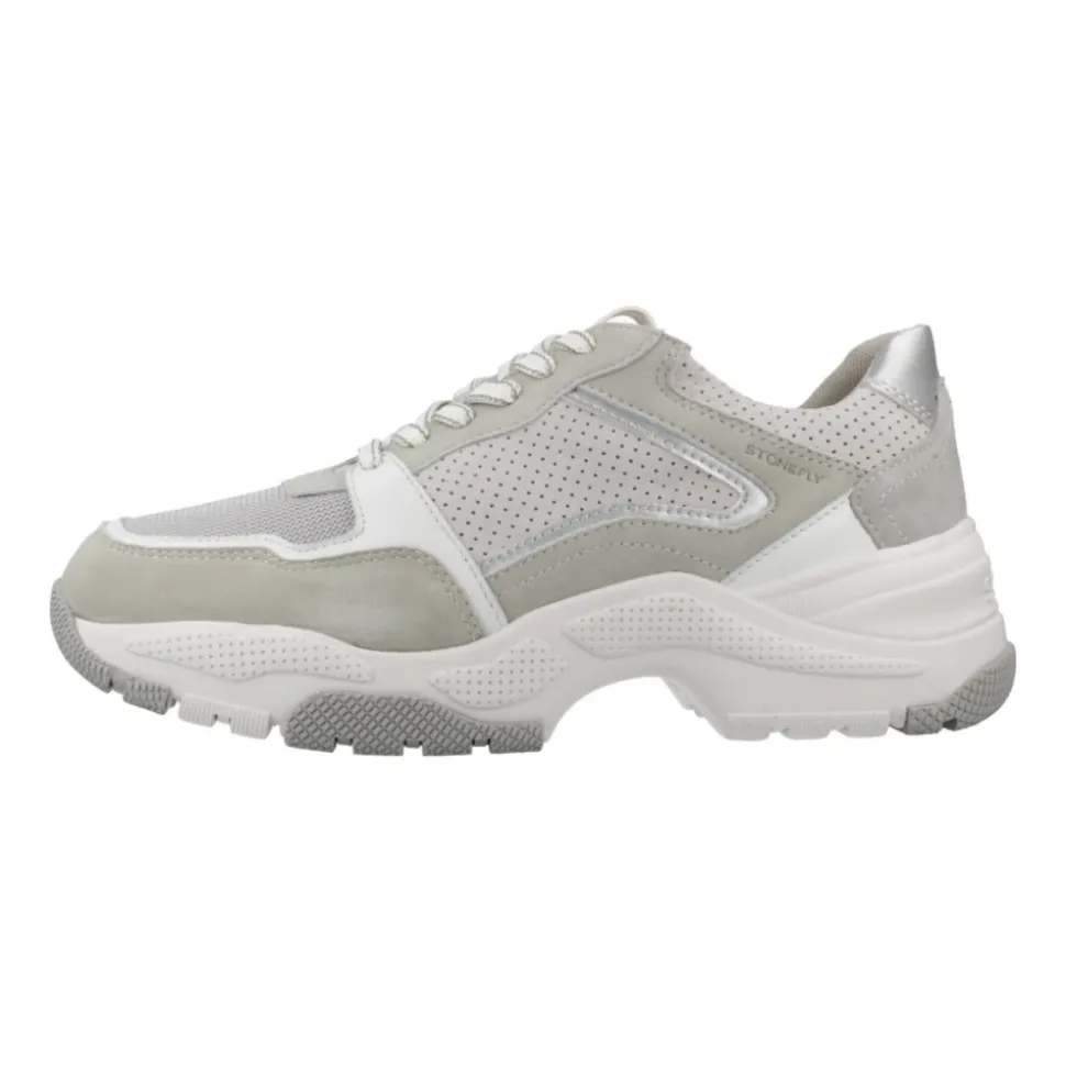 Stonefly FUTURA 22 er en casual sneaker, der kombinerer gedeskindruskind og tekstilpaneler med en chunky EVA-sål. Den har en Blusoft Memory udtagelig indersål for stødabsorberende, åndbar komfort hele dagen. Vigtige egenskaber: Grå | Grøn | Gedeskindruskind, Tekstil | Hælindsats af memoryskum for stødabsorbering | Åndbar indersål med åbne celler | Letvægts EVA-sål | Snørelukning | Udtagelig indersål (Blusoft Memory®) | Perforeret overdel | Chunky sål | Paneler af blandede materialer (ruskind og tekstil) | Dimensioner og pasform: Hælhøjde: 6 cm | Almindelig pasform | Sammensætning og pleje: Gedeskindruskind (læder) | Tekstil | EVA | Memoryskum (indersål)