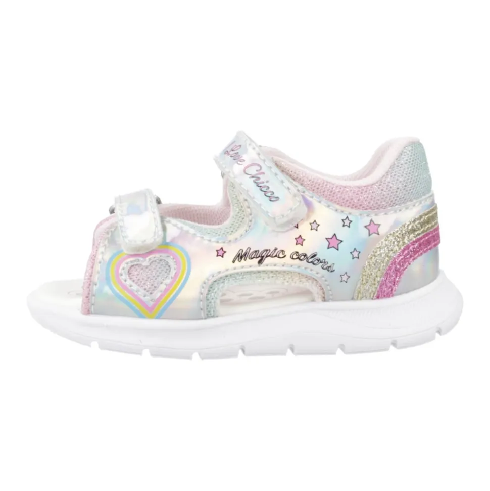 Chicco Gaby Sandal er en letvægtssandal til hverdagsbrug, der kombinerer en syntetisk overdel med en slidstærk gummiydersål for pålidelig trækkraft og komfort. Nøgleattributter: Multicolor | Sølv | Syntetisk | Gummiydersål | Sammensætning & pleje: Overdel: Syntetisk | For og indersål: Tekstil, syntetisk | Ydersål: Gummi