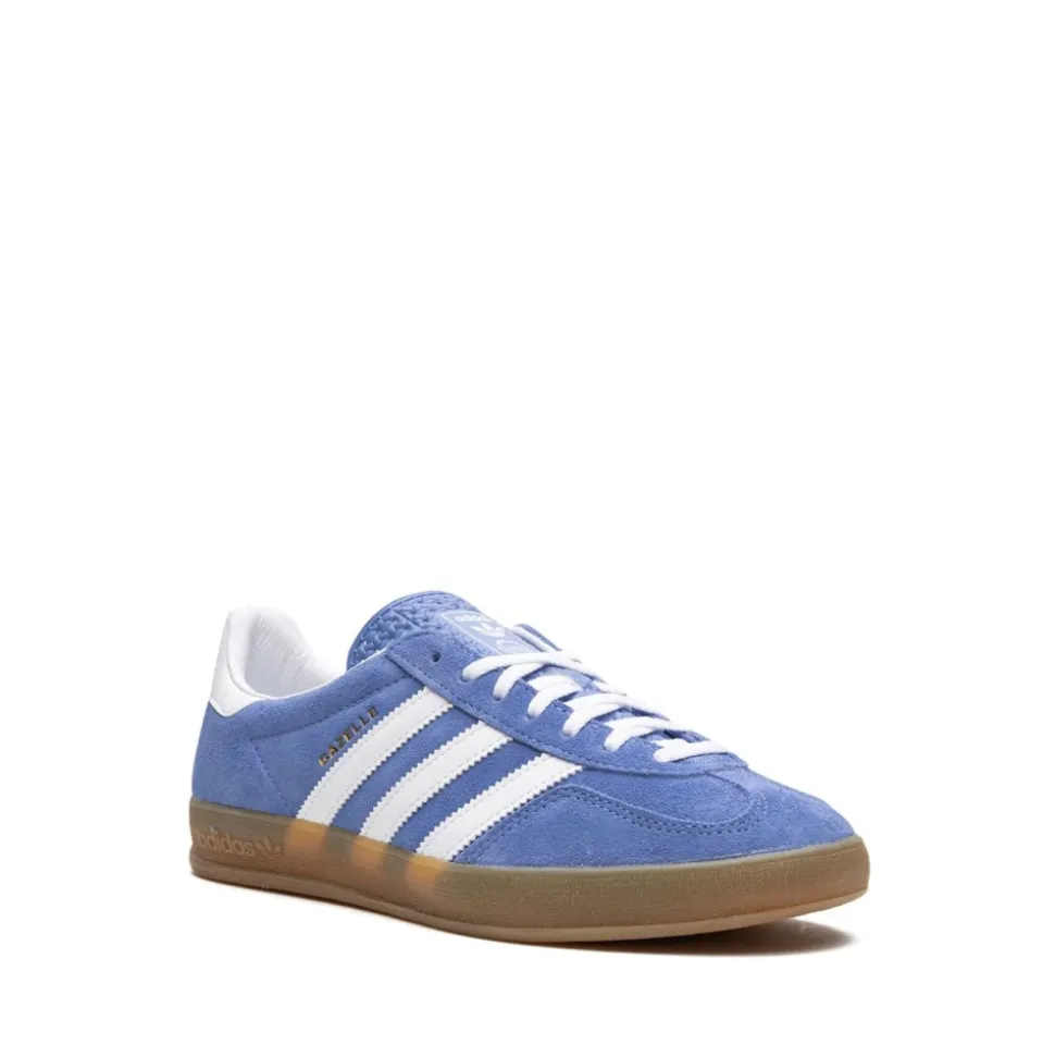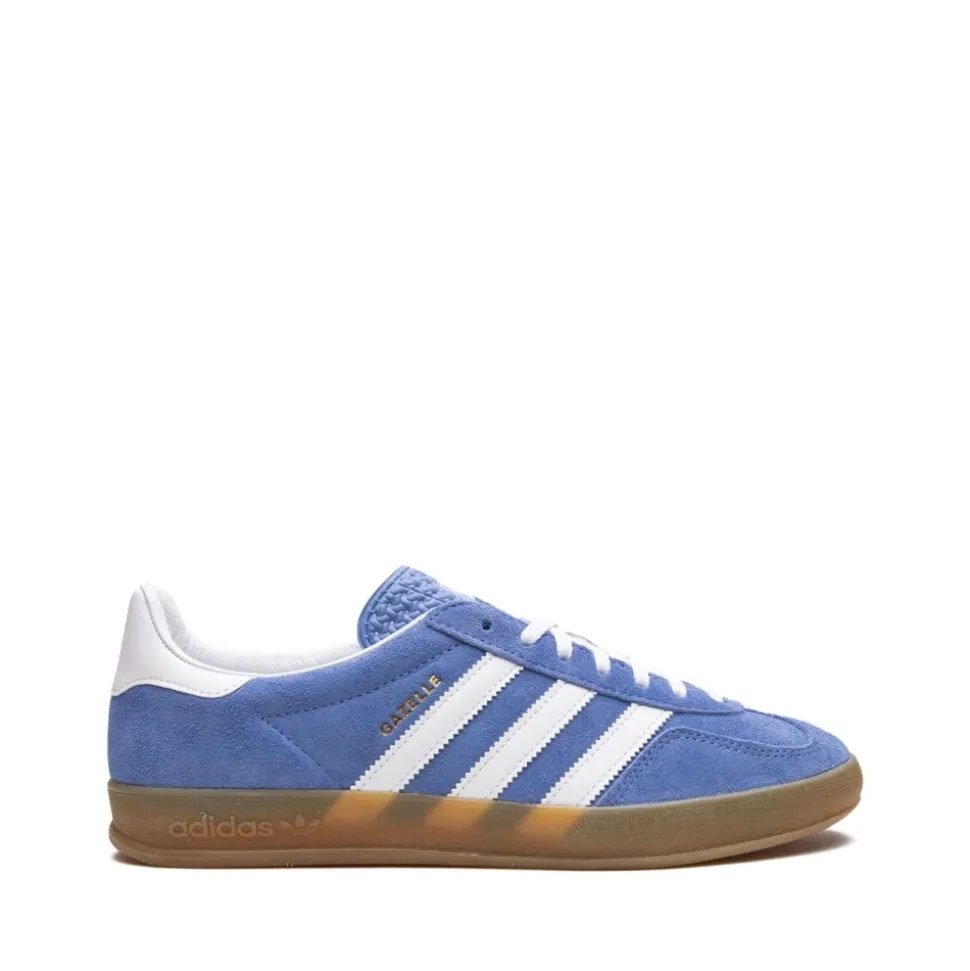 adidas Gazelle Indoor opdaterer den klassiske Gazelle-silhuet med en lyseblå ruskindsoverdel, hvide læderdetaljer og en gummisål. Designet leverer baneinspireret stil med hverdagsfæste og et lavprofil-look. Nøgleattributter: Blue fusion | Cloud white | Gold metallic | Ruskind | Gummiydersål for greb | Struktureret overdel for slidstærk hverdagsbrug | Snørelukning | Tekstureret gummiydersål for greb | Lav silhuet | Kontrasterende læder 3-striber | Guldfolie ‘Gazelle’ logo på siden | Hvid læderhælkappe | Sammensætning & pleje: Overdel: Ruskind (læder) | For: Tekstil | Ydersål: Gummi