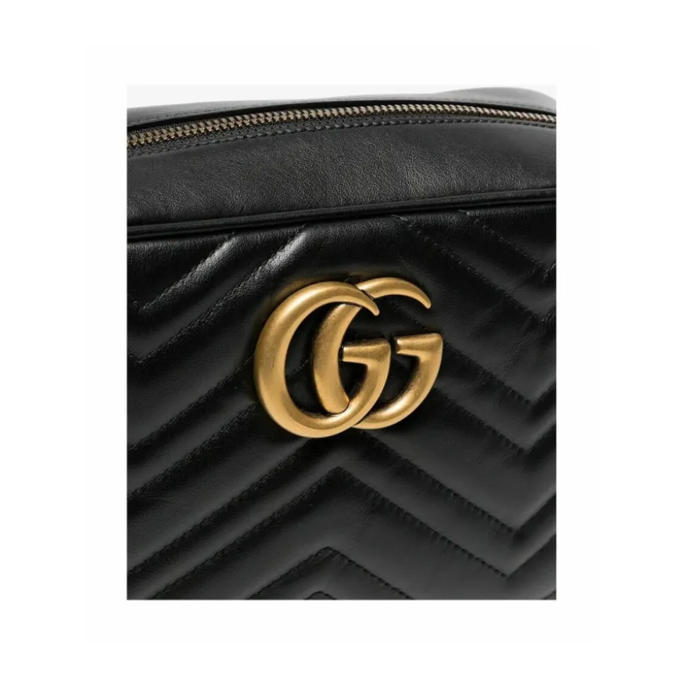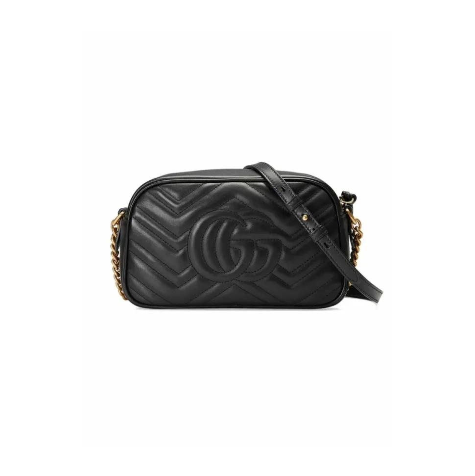 Løft din mode med GG Marmont Small Matelassé Skuldertaske fra Gucci. Fremstillet af 100% læder, denne sorte skuldertaske har et zigzag-mønster og lynlås. Den ikoniske ‘Double G’ guldfarvede metallogo tilføjer en luksuriøs touch. Indvendig lomme og kæde skulderrem for komfort og alsidighed. Perfekt til enhver lejlighed med dimensioner på 24cm x 13cm x 7cm. Shop nu!