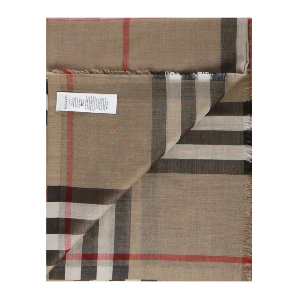 Burberry Giant Check Uld- og Silketørklæde bringer brandets signaturarkivtern til en let muslinvævning. Ideel til lagdeling, det tilbyder et elegant fald og delikate frynsekanter til alsidig styling. Vigtige egenskaber: Beige | Arkivbeige | Uld og silke | Letvægt | Wraparound-styling | Let fald | Plaid ternet mønster | Rektangulær form | Delikate frynsede kanter | Logopatchdetalje | Dimensioner og pasform: 220 x 70 cm | One size | Sammensætning og pleje: 51% uld | 49% silke | Kun kemisk rensning