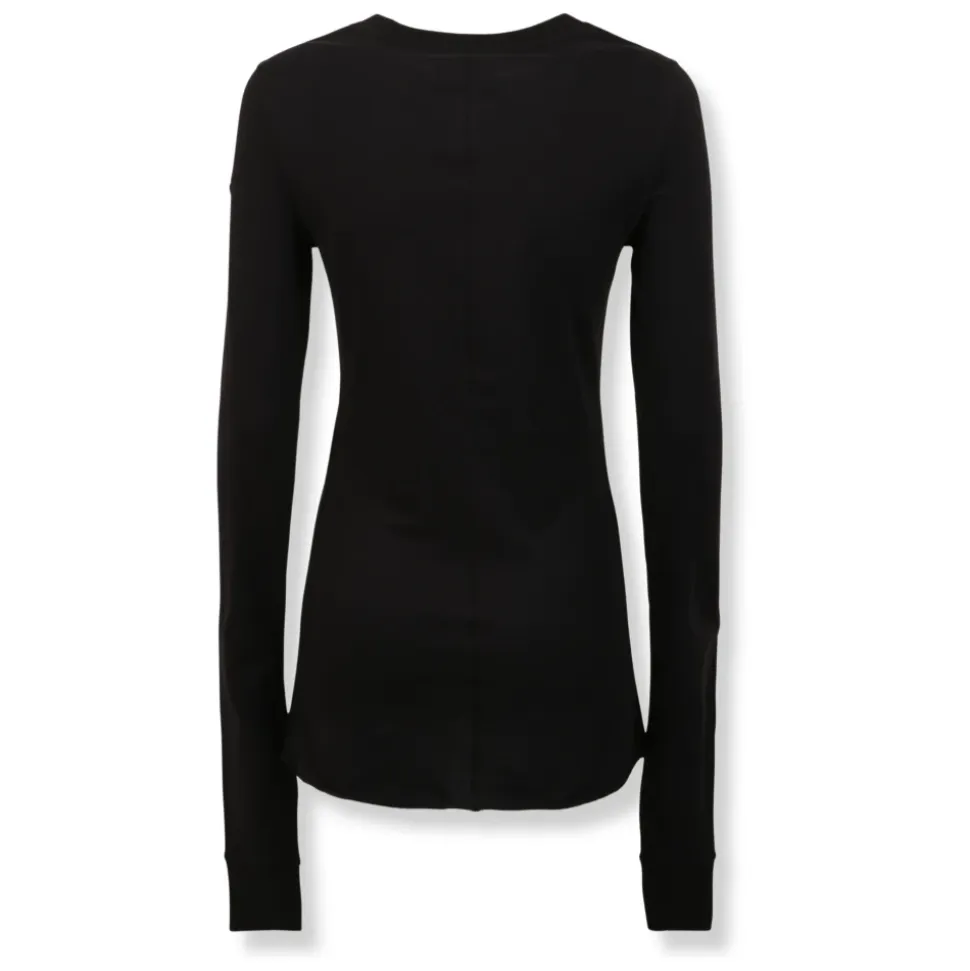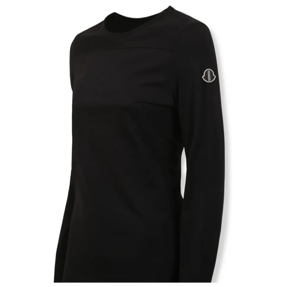 Moncler Girder LS T fra Moncler + Rick Owens samarbejdet er en langærmet bomuldsjersey top, der kombinerer en struktureret paneldetalje med en ren, minimalistisk silhuet. Den er designet til hverdagsbrug med et diskret, brandet mærke på overarmen. Nøgleattributter: Sort | Bomuld | Mellemvægt jersey | Kompakt strik | Let børstet håndfølelse | Rund halsudskæring | Lange ærmer | Afstivet panel på øvre bryst og skulder foran | Broderet logo mærke på venstre overarm | Paneldelt design | Dimensioner & pasform: Slank pasform | Sammensætning & pleje: 100% Bomuld
