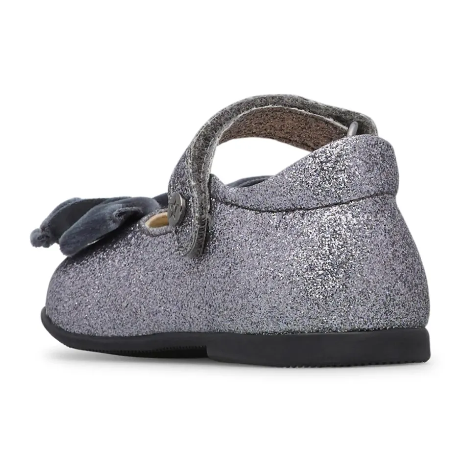 Naturino Glitter Fabric Ballerina kombinerer en funklende glitteroverdel med en stor fløjls sløjfe og en sikker vristrem for komfortabel hverdagsbrug. Designet kombinerer en rund tå, læder indersål og en gummisål for greb og komfort. Nøgleattributter: Grå | Sølv | Glitterstof | Vristrem | Gummisål | Læderforing og indersål | Rund tå | Stor fløjls sløjfe | Sammensætning & pleje: Glitterstof | Læderforing | Læder indersål | Gummisål