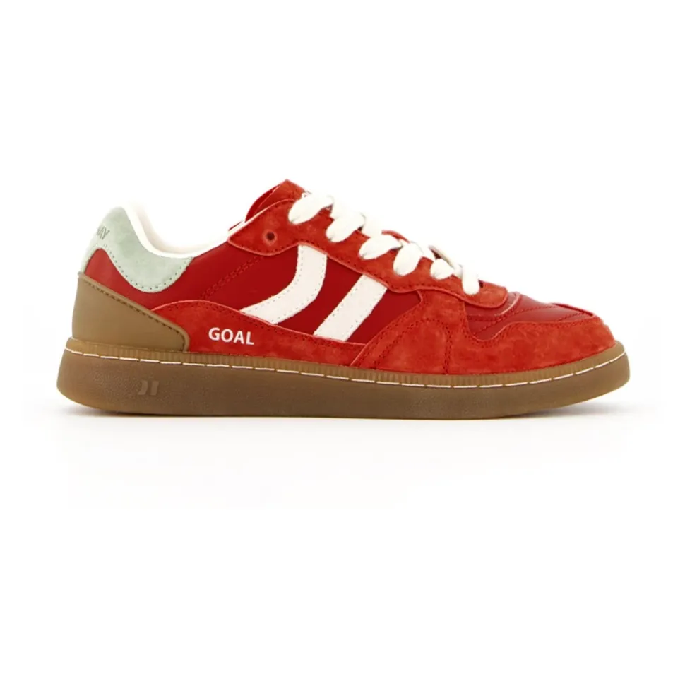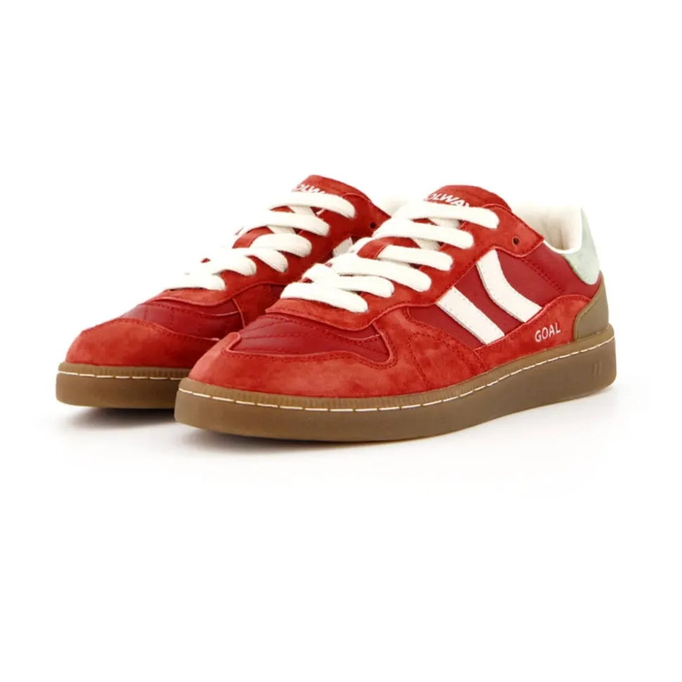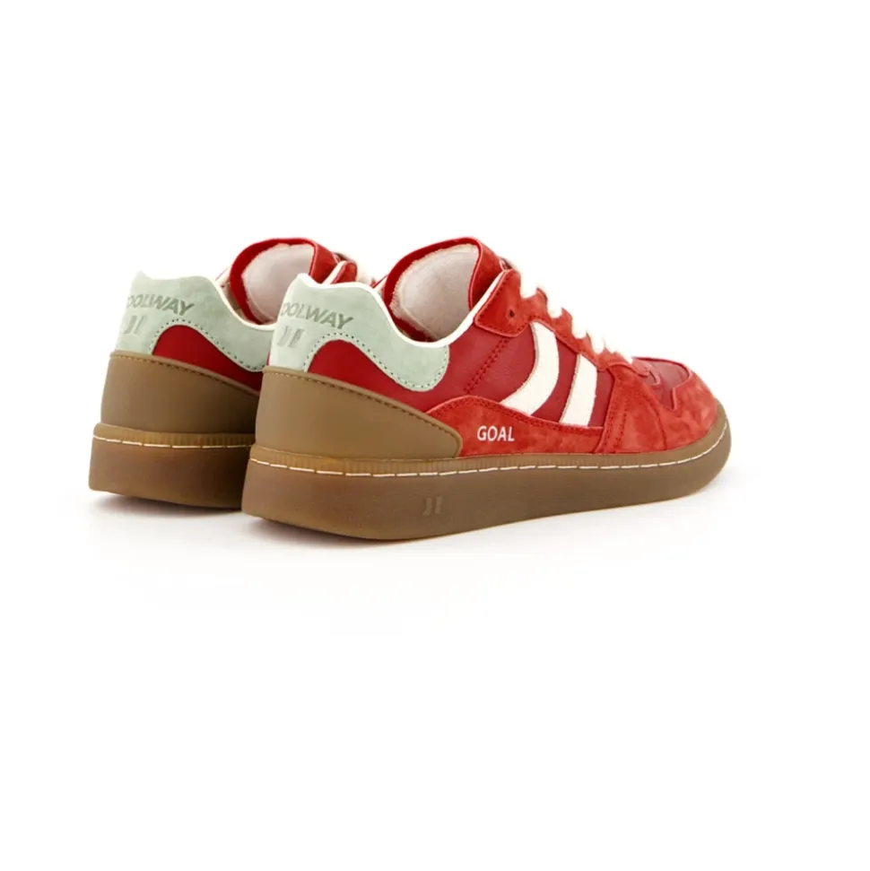COOLWAY Goal er en ruskindssportssko, der kombinerer kontrasterende farvedetaljer med en fleksibel gummisål for pålideligt greb. Den er designet til sporty hverdagsbrug med komfortfokuseret polstring og forstærket konstruktion. Nøgleattributter: Rød | Ruskind | Fleksibel gummisål for holdbarhed og greb | Udskiftelige tofarvede flade bomuldssnørebånd | Formsyet pløs med polstring | Let polstret krave | Syforstærket front/tå | Kontrasterende farvedetaljer | Figurmønstret polstring på pløsen | Sammensætning & pleje: Ruskind | Gummi