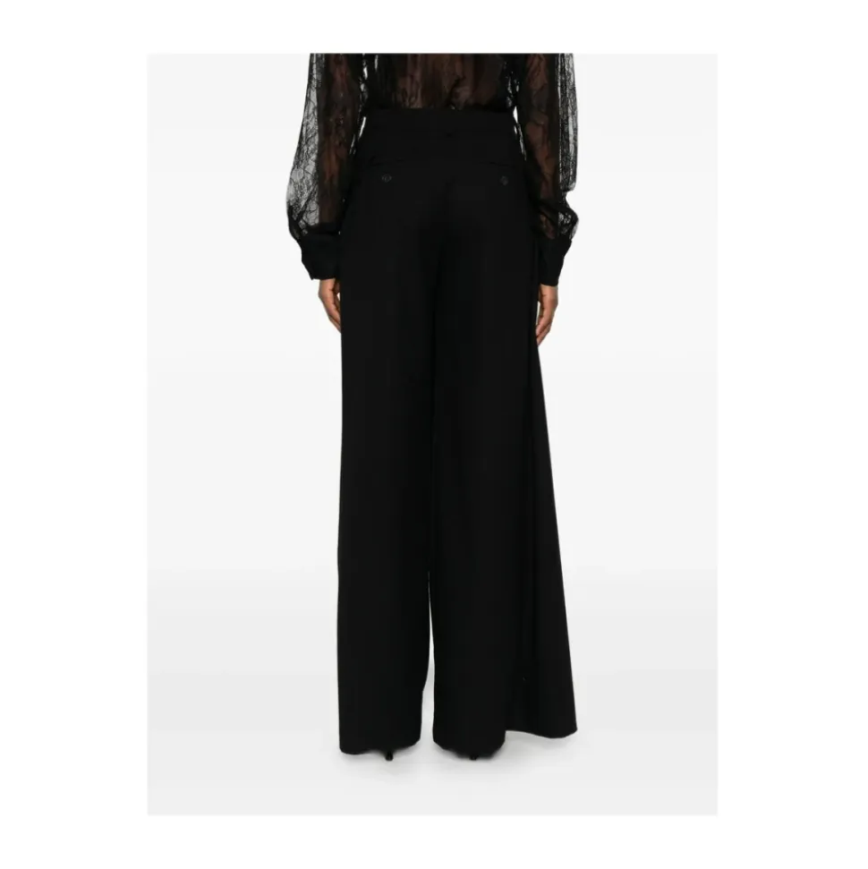 Nina Studio Gonna Pantalone Effetto Wrap kombinerer en skørtelignende front med buksekomfort og tilbyder en moderne wrap-effekt silhuet, der er ideel til pæne eller arbejdsrelaterede looks. Vigtige egenskaber: Sort | Bæltestropper i taljen | Asymmetrisk knaplukning med krydset frontklap | To paspolerede baglommer med knap | Wrap-effekt front | Lang nederdel-bukse silhuet | Asymmetrisk taljedetalje | Dimensioner og pasform: Lang længde | Let bred ved sømmen | Almindelig talje med bæltestropper | Asymmetrisk frontlukning