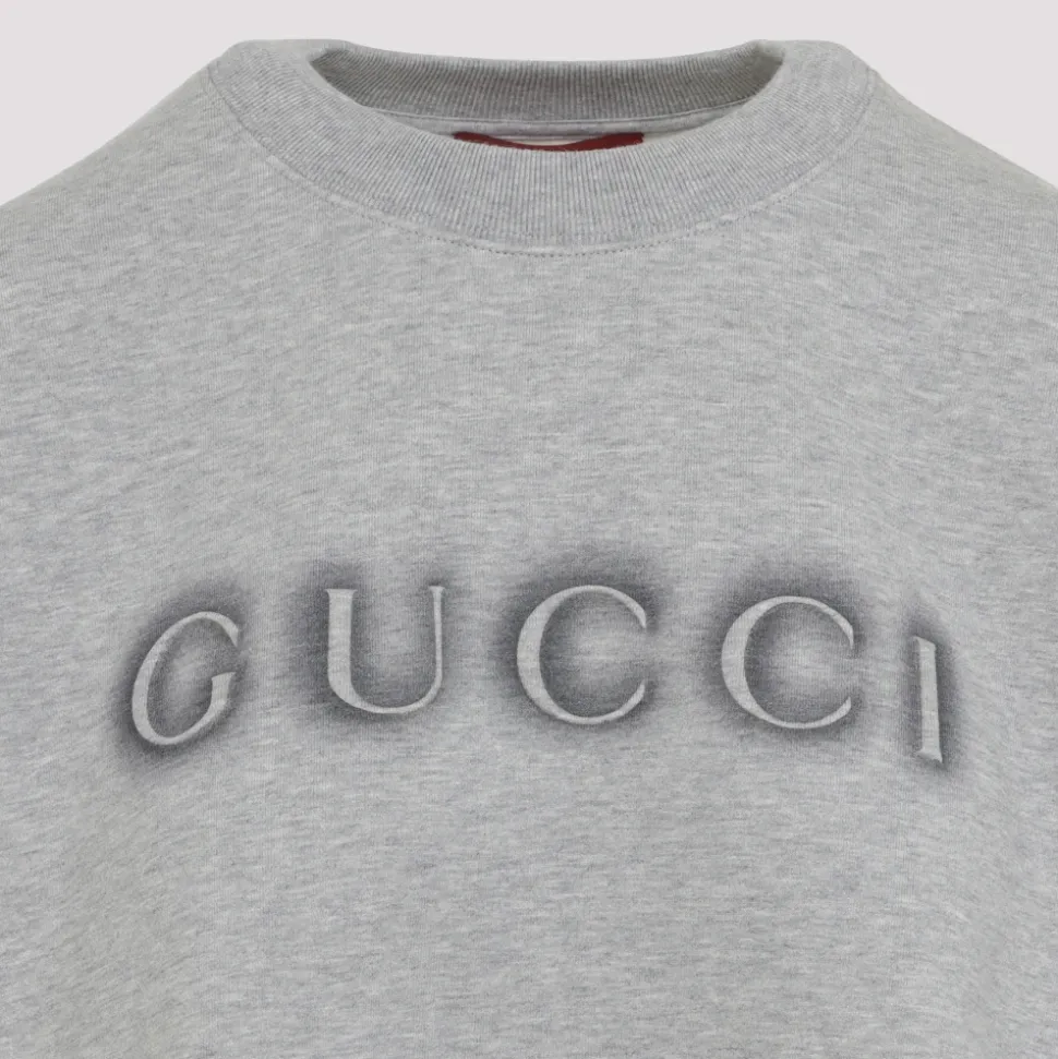 Forkæl dig selv med denne Gucci Grå Bomulds Sweatshirt. Lavet af meleret grå bomuld, med rund halsudskæring, logo på brystet, dropped shoulders, lange ærmer, ribkanter og en afslappet pasform.