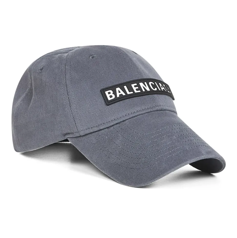 Forkæl din stil med denne Balenciaga-kasket til mænd. Med en justerbar krog-og-løkke bagrem, en kontrastfarvet Balenciaga-silikonepatch foran og en buet topstikket skygge. Denne panelopdelte kasket har også broderede ventilationshuller, er foret og fås i en elegant grå farve. Lavet af 100% bomuld i Portugal.