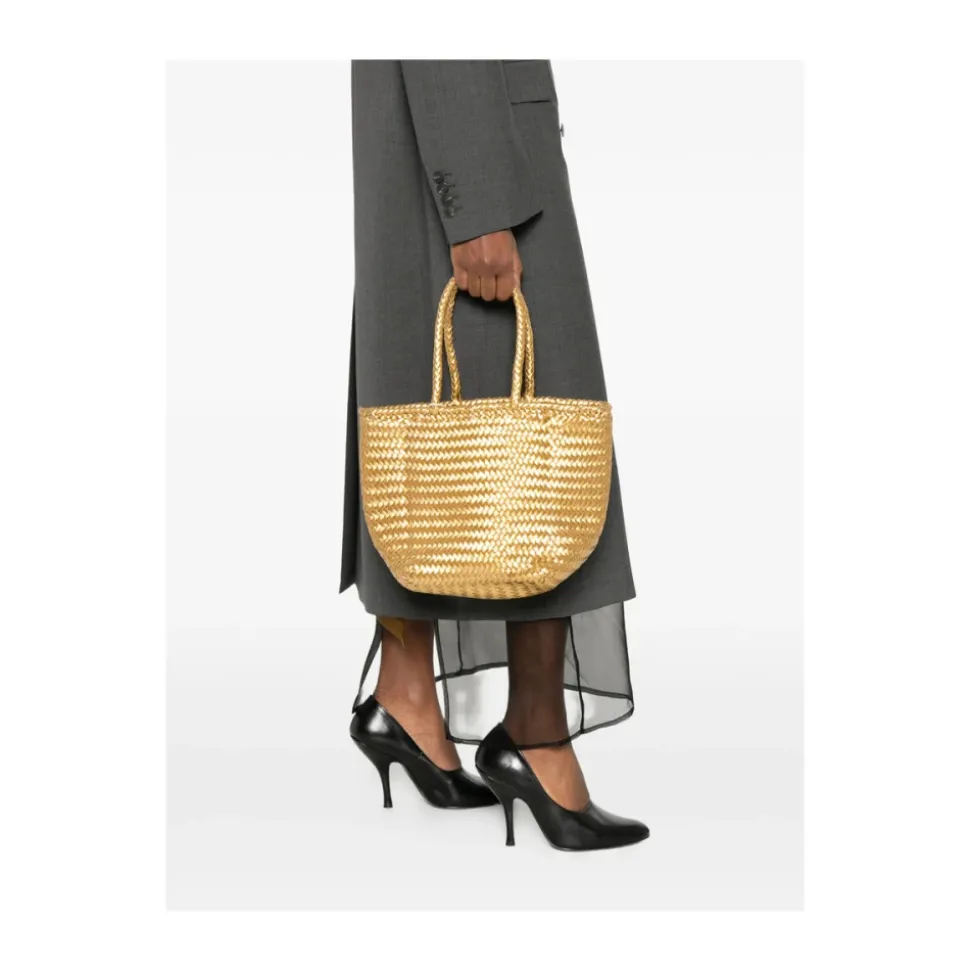 Dragon Diffusion Grace Basket Bag fremviser brandets håndvævede læderhåndværk i en tote taske i kurvestil. Ideel til hverdagsbrug, den kombinerer skulpturel tekstur med praktisk opbevaring. Nøgleattributter: Gul | Guld | Læder | To tophanke | Inkluderer dedikeret pose | Åben topkonstruktion | Vævet læderkurvemønster | Mesh læderdetaljer | Tote silhuet | Mål og pasform: One size | Sammensætning og pleje: Læder | Aftørres med en blød, fugtig klud.