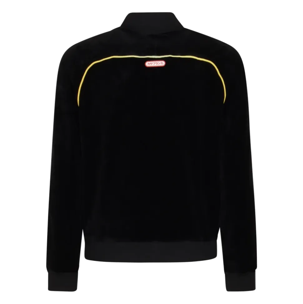 Casablancas Gradient Piping Velour Track Jacket kombinerer blød velour med karakteristisk gradient piping for et afslappet, eksklusivt sportsbeklædningsstykke. Vigtige egenskaber: Sort | Bomuldsblanding velour | Mellemvægt | Let stretch | Blød tekstur | Lynlåslukning | Welt lommer | Fuldt foret | Ribkant i kraven, manchetter og forneden | Diamant logo lynlås vedhæng | Gradient piping tværs over skuldre, ærmer og bryst | Sammenflettede CC logo og logo patch | Japansk-skrift branding under bærestykket | Rib baseball krave | Dimensioner & pasform: Afslappet pasform | Sammensætning & pleje: Hovedmateriale: 89% bomuld, 11% polyamid | Foring: 100% polyester | Specialiseret renseri.