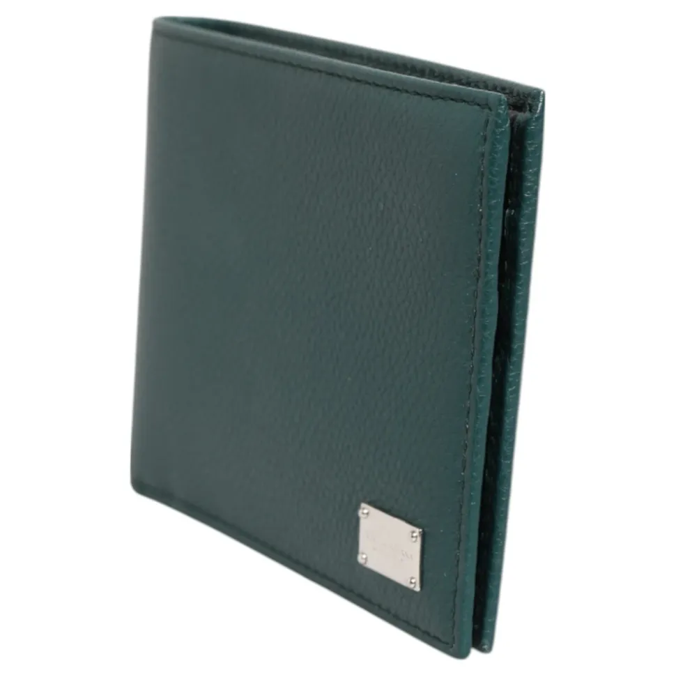 Forøg din stil med denne fantastiske Dolce & Gabbana bifold tegnebog i elegant grønt kornet læder. Lavet i Italien, denne tegnebog har en metallogo-plade for et sofistikeret touch. Med rigelig plads til dine væsentlige ting er dette kompakte design perfekt til den moderne mand.