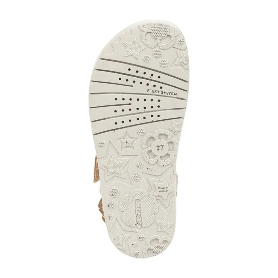 Køb disse stilfulde Geox sandaler til piger i guld farve. Perfekt til børn, disse PU sandaler har en mikrofiber foring og PU ydersål. Varekode: J15EAA 000BN C2005.