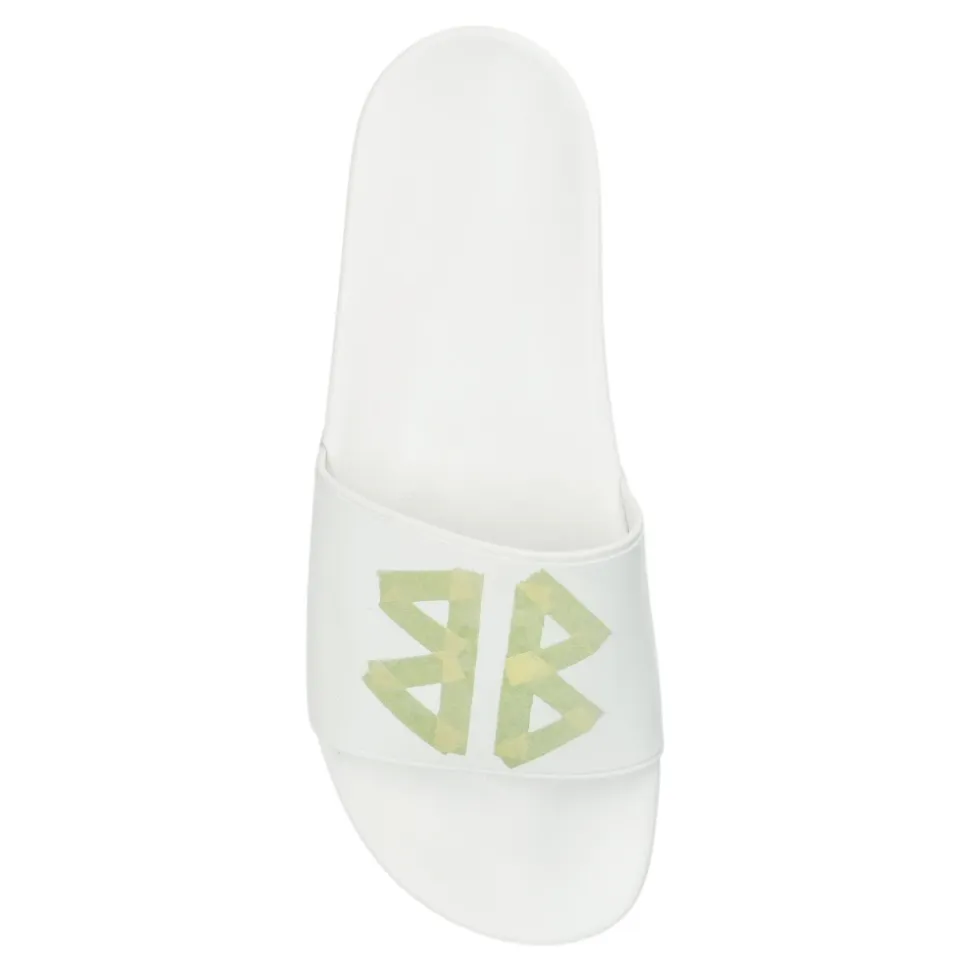 Præsentation af RUBBER ‘POOL’ SLIDES fra det eksklusive mærke BALENCIAGA, som sømløst kombinerer moderne design med tidløs elegance. Disse enestående slides, lavet af den højeste kvalitetsgummi, er det perfekte valg til poolen eller stranden, og deres lette rengøring gør dem ekstremt praktiske. Slidserne har en KLASSISK FORM med en bred rem foran, der sikrer komfort og stabilitet under brug. Remmen har et GRØNT GEOMETRISK MØNSTER, der tilføjer et moderne touch og identificerer produktet som en del af en anerkendt designersamling. De dominerende HVIDE FARVER på slidesne fremhæver deres alsidighed og elegante udseende, hvilket gør dem til det perfekte tilbehør til enhver sommeroutfit. Slidserne er designet med mænd i tankerne, der værdsætter funktionalitet kombineret med et fashionable look. HVORFOR SKAL DU KØBE DETTE PRODUKT? * Eksklusivt produkt fra det anerkendte mærke Balenciaga. * Lavet af høj kvalitetsgummi, perfekt til sommeren. * Moderne design med et geometrisk mønster. * Universal hvid farve, der matcher enhver outfit. * Komfort og stabilitet takket være den klassiske konstruktion. Sål højde: 2cm Sål højde på det højeste punkt: 3cm