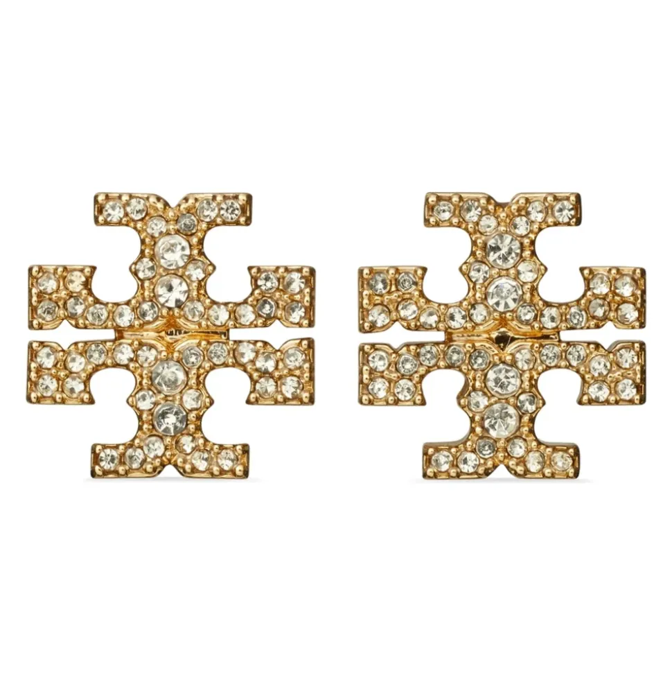 Løft din accessoriesamling med disse udsøgte øreringe fra Tory Burch. Disse øreringe er fremstillet af messing og prydet med glitrende krystaller og tilføjer et strejf af elegance til ethvert ensemble. Produkt detaljer: Guld | Gul | Messing | Nikkel-fri | Trykstifter | Krystaludsmykning | Sammensætning og pleje: Messing | Krystaller | Aftør med en blød klud.