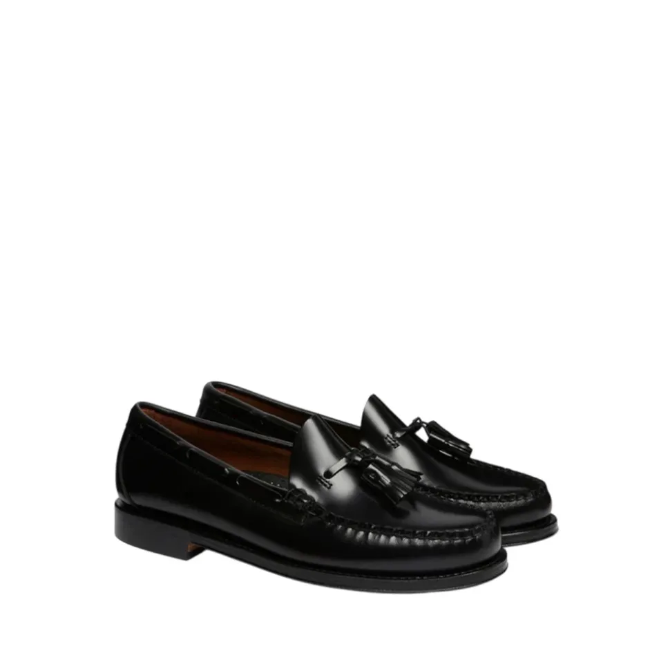 Håndlavet G.H. Bass & Co. loafers lavet af blank brun læder og syet med voksede tråde, med en duskedetalje foran. Disse sko tilbyder ikke kun tidløs stil, men også en behagelig og regelmæssig pasform.