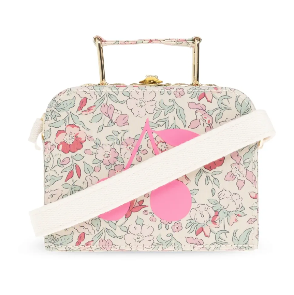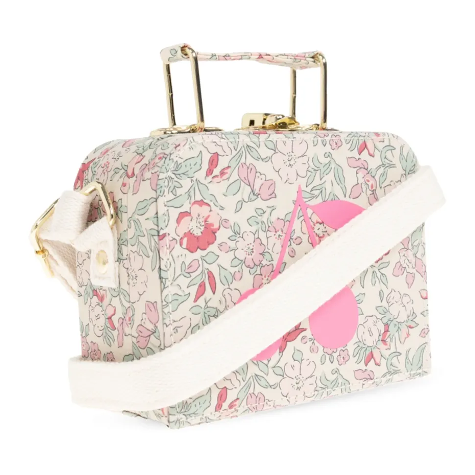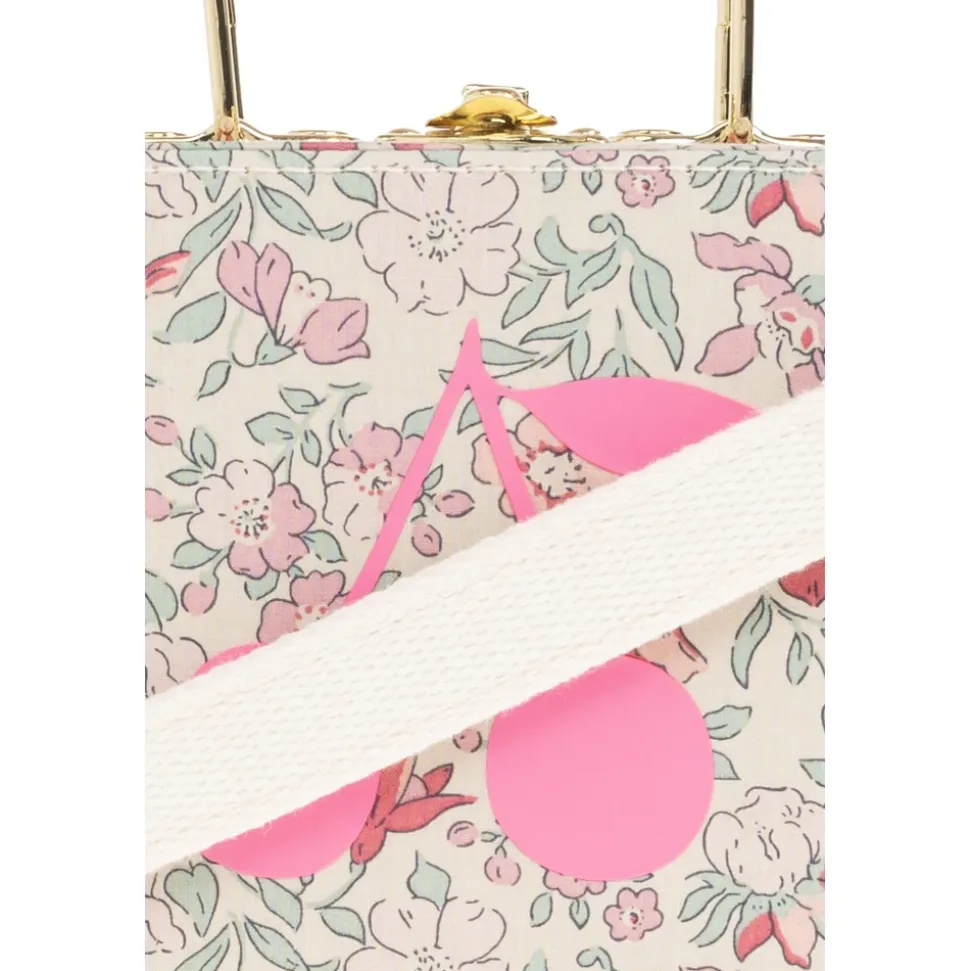 Bonpoint Håndtaske kombinerer en struktureret, firkantet silhuet med et delikat pastelblomsterprint og brandets karakteristiske lyserøde kirsebærmotiv, hvilket skaber et raffineret tilbehør til hverdagsbrug. Den faste konstruktion og de gyldne metaldetaljer giver den et poleret, tidløst look. Vigtige egenskaber: Multifarvet | Bomuld | Fast, struktureret konstruktion | Bred cremehvid rem for komfortabel bæring | Top håndtag for alternativ bæring | Firkantet rektangulær form med afrundede kanter | Pastelblomsterprint i pink og grøn på en cremehvid baggrund | Lyserødt kirsebærmotiv på forsiden | Gylden metal lukning og håndtag | Mål & pasform: Højde: 9,5 cm | Bredde på bredeste punkt: 12,5 cm | Bundbredde: 5,5 cm | Sammensætning & pleje: Bomuld