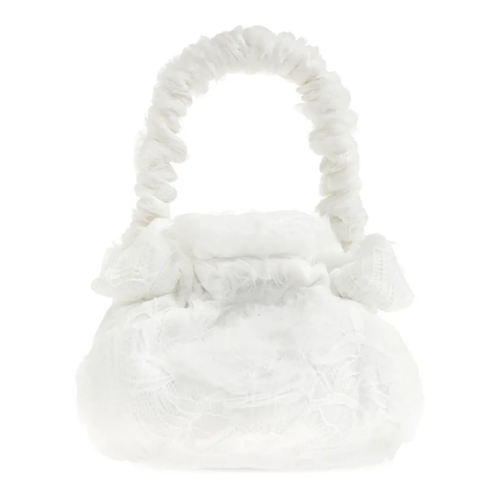 HÅNDTASKE fra Self-Portrait Kids er et udsøgt forslag til de yngste elskere af subtil elegance. Den harmoniske, afrundede form og bløde linjer understreger dette accessories unikke karakter, hvis korte, rynkede håndtag er udført med største omhu. Taskens overflade fanger med sin tredimensionelle, blonderede tekstur inspireret af botaniske motiver – spiral mønstrene vækker finesse af kunstneriske applikationer. Designets midtpunkt er en mesterligt udført stofsløjfe med en håndlavet blomst, der giver stykket en tydelig, piget charme. Den delikate foring og materialer af høj kvalitet garanterer blødhed og bærekomfort, hvilket skaber et værk mellem verdenerne af mode og anvendt kunst. HVORFOR SKAL DU VÆLGE DETTE PRODUKT? * Enestående materialestruktur – subtil, tredimensionel blonder * Kunstfærdigt håndlavet blomst og sløjfe * Uovertruffen letthed og venlighed over for børnehænder * Unikt design fra Self-Portrait Kids * Perfekt valg til elegante lejligheder Højde: 12 cm Bredde: 18 cm Modelens mål Højde: 176 cm Buste: 85 cm Talje: 60 cm Hofte: 89 cm