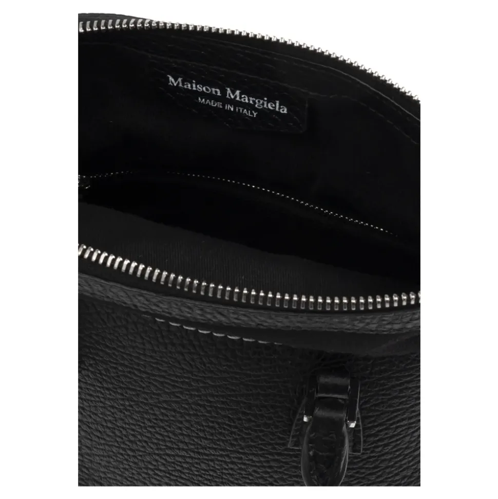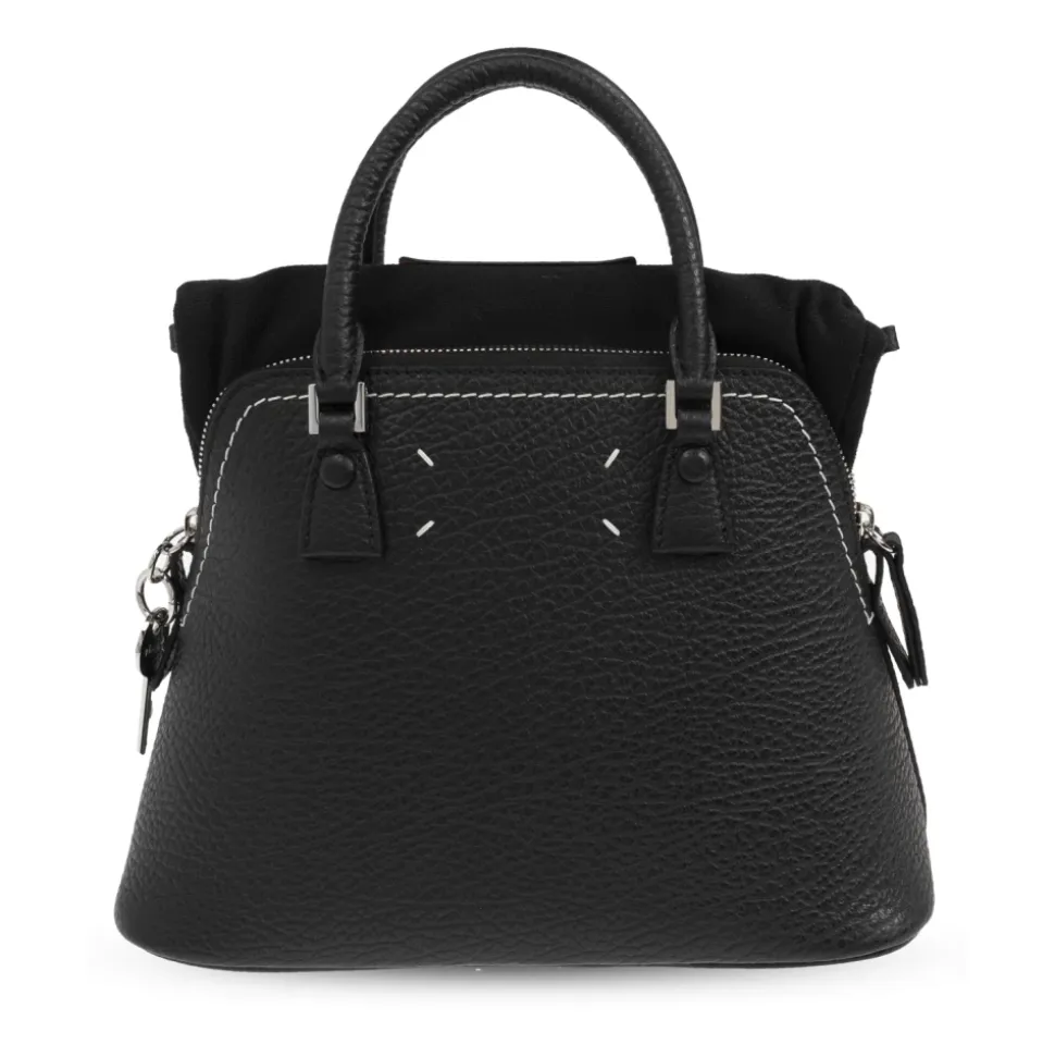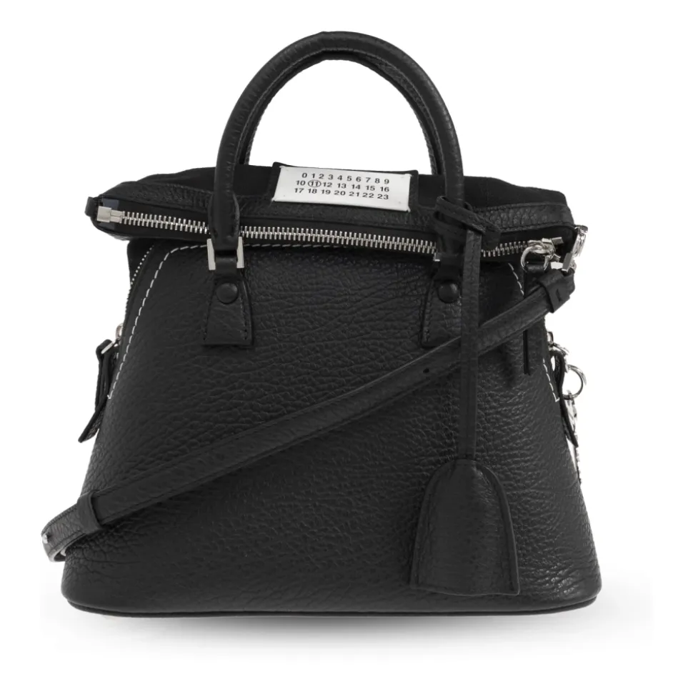 Maison Margiela Håndtaske 5AC Mini er et sofistikeret tilbehør, der kombinerer klassisk elegance med moderne design, fremstillet af læder af høj kvalitet for en luksuriøs fornemmelse. Produkt detaljer: Sort | Kalvelæder | Justerbar skulderrem | Flere indvendige lommer | Klassisk form | Sølvfarvede metalelementer | Karakteristisk nummerpatch | Dimensioner og pasform: Højde: 26 cm | Bredde på bredeste punkt: 26 cm | Bundbredde: 13 cm | Sammensætning og pleje: 100% Kalvelæder | 79% Bomuld (Kontrast) | Aftørres med en blød klud