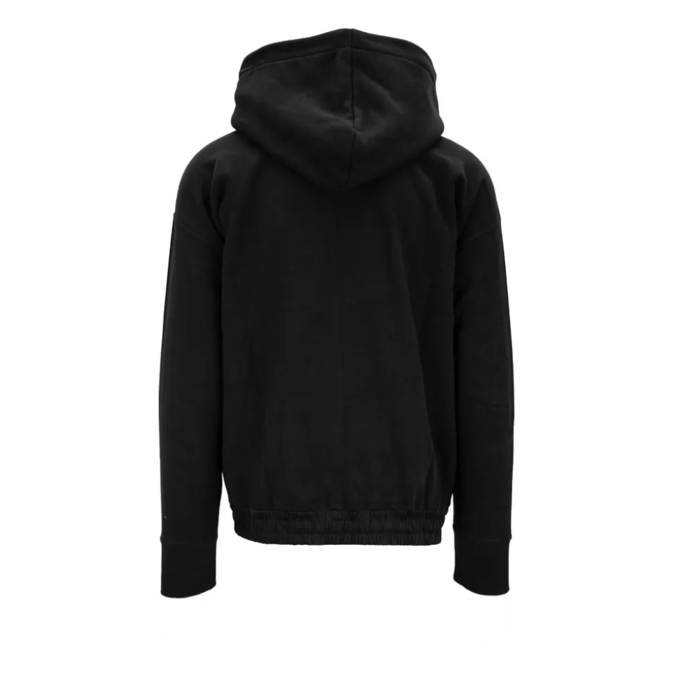 Opgrader din afslappede stil med Saint Laurents hættetrøje, der har et hævet brand-logo og er fremstillet af materialer af høj kvalitet. Denne alsidige beklædningsgenstand er perfekt til hverdagsbrug. Produkt detaljer: Sort | Bomuld | Kængurulomme | Hævet brand-bogstavering | Ribstrikkede ærmekanter | Sammensætning og pleje: 100% bomuld | 52% acetat | 48% viskose | 100% polyester