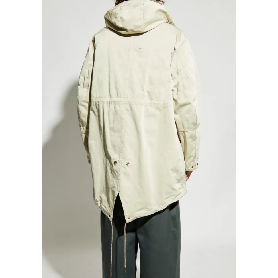 HÆTTET JAKKE fra Burberrys eksklusive kollektion udtrykker moderne elegance og tidløs stil. Den forlængede, let oversized silhuet, inspireret af den klassiske parka med en tydeligt forlænget ryg, sikrer bevægelsesfrihed og enestående komfort, der perfekt supplerer hverdagens ensembler. Den rummelige, justerbare hætte med snore garanterer enestående beskyttelse mod dårligt vejr, mens to generøst dimensionerede klappelommer med dekorative snore fremhæver designets raffinerede karakter. En lynlåslukning skjult under en trykknaplukning tilbyder effektiv vindbeskyttelse, der harmonerer med den minimalistiske, cremefarvede finish og subtile syninger. Hele stykket er prydet med en diskret, tonal BURBERRY-logo – et emblem på håndværk og sofistikering. Materialer af førsteklasses kvalitet sikrer holdbarhed, letvægt og komfort, hvor hver eneste detalje hylder den britiske skræddertradition. HVORFOR VÆLGE DETTE PRODUKT? * Distinkt, forlænget snit med en moderne silhuet * Prestigen fra det verdenskendte Burberry-mærke * Rumlig hætte og funktionelle lommer * Fejlfri materielskvalitet * Subtil elegance i en cremefarvet nuance Modelmålinger Højde: 193 cm Bryst: 95 cm Talje: 82 cm Hofter: 93 cm Modellen har størrelse: L