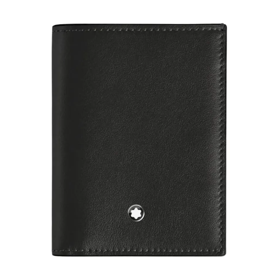Montblanc Hammered Leather Wallet fremhæver en tekstureret (hamret) læderfinish og en logo-detalje foran. Den opbevarer kort og pengesedler sikkert med en trykknaplukning. Vigtige egenskaber: Sort | Nero | Læder | Fire kortpladser | Trykknaplukning | Et rum til pengesedler | Hamret finish | Logo-detalje på forsiden | Mål & pasform: Højde: 8 cm | Bredde: 10,5 cm | Dybde: 1 cm | Sammensætning & pleje: 100% læder