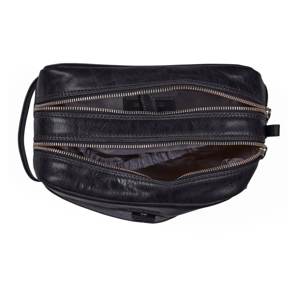 Howard London Hayden Toilettaske er et rejsekit i bøffellæder designet til organiseret pakning. Den har rum med dobbelt lynlås og flere lommer til at holde toiletartikler sikre på weekendture eller længere ferier. Nøgleattributter: Sort | Bøffellæder | YKK standard lynlåse | Hardware i premium kvalitet | Hovedrum med dobbelt lynlås | Indvendig lynlåslomme | Åbent ydre rum med magnetisk lukning | Ydre lomme med lynlås | Rummeligt interiør til organiseret opbevaring | Dobbelt lynlås design | Enkel, tidløs finish | Magnetisk lukning af ydre rum | Dimensioner og pasform: 25 x 13 x 15 cm | Rejsestørrelse – velegnet til længere ferier og weekendture | Sammensætning og pleje: Bøffellæder