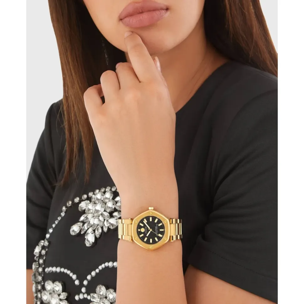 Løft din stil med Hexagon 38mm Uret fra Philipp Plein, en perfekt blanding af elegance og funktionalitet. Med et markant guldfarvet urkasse og en elegant sort urskive er dette ur et statement-tilbehør til enhver lejlighed. Produkt detaljer: Guld | Sort | Guldfarvet rustfrit stål | Vandtæt op til 5 ATM | Guldfarvet urkasse | Sort urskive | Guldfarvet rustfrit stållænke | Sammensætning og pleje: Leveres i en Philipp Plein skull gaveæske.
