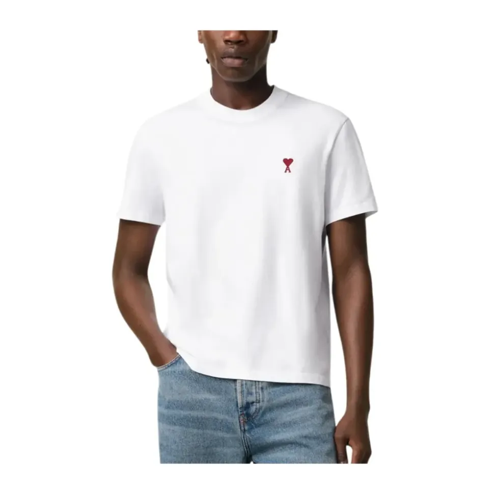 Forkæl dig selv med denne Ami Paris T-shirt med et enkelt logo design. Perfekt til mænd.